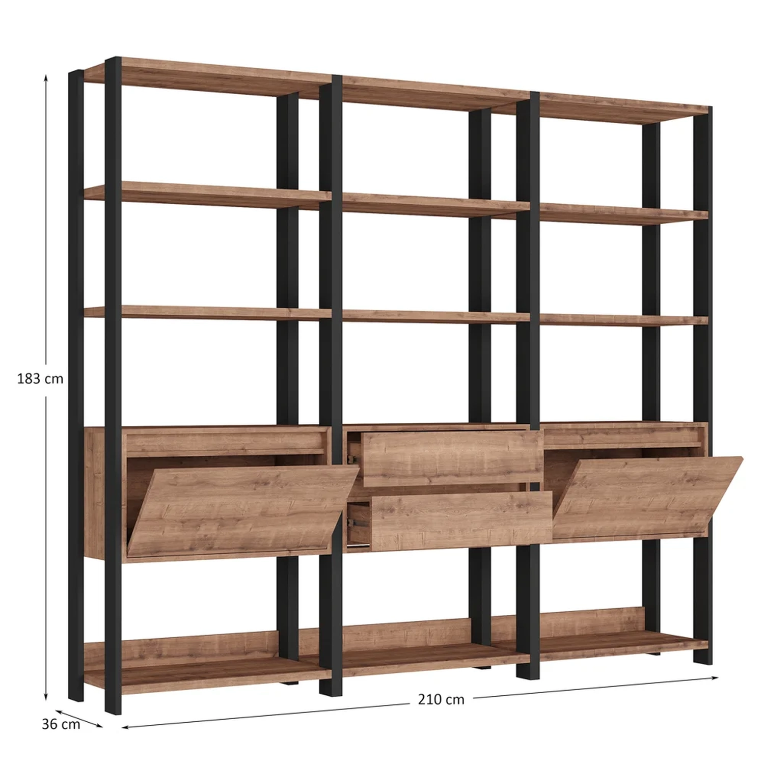 Se você gosta do objetivo e funcional, a estante livreiro é a personificação desse conceito! Ela possui estrutura em MDP e MDF de qualidade, com acabamento em pintura BP fosco que além de garantir durabilidade e resistência o produto, ainda contribui para um design moderno no estilo industrial! Inclusive, conta com 12 prateleiras formando nichos para colocar seus objetos, 2 gavetas de corrediças telescópicas e 2 portas basculantes! Me diz, essa estante é um complemento imperdível né?
