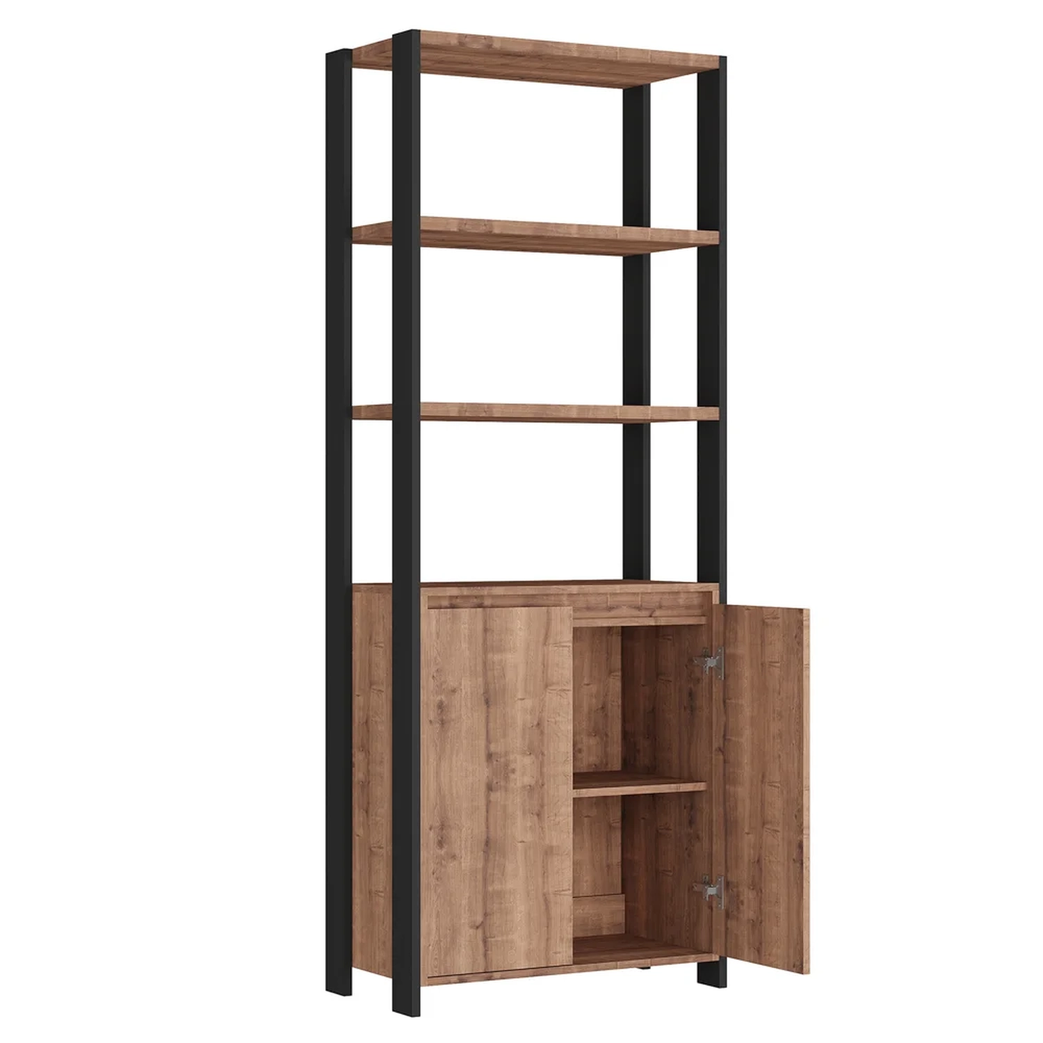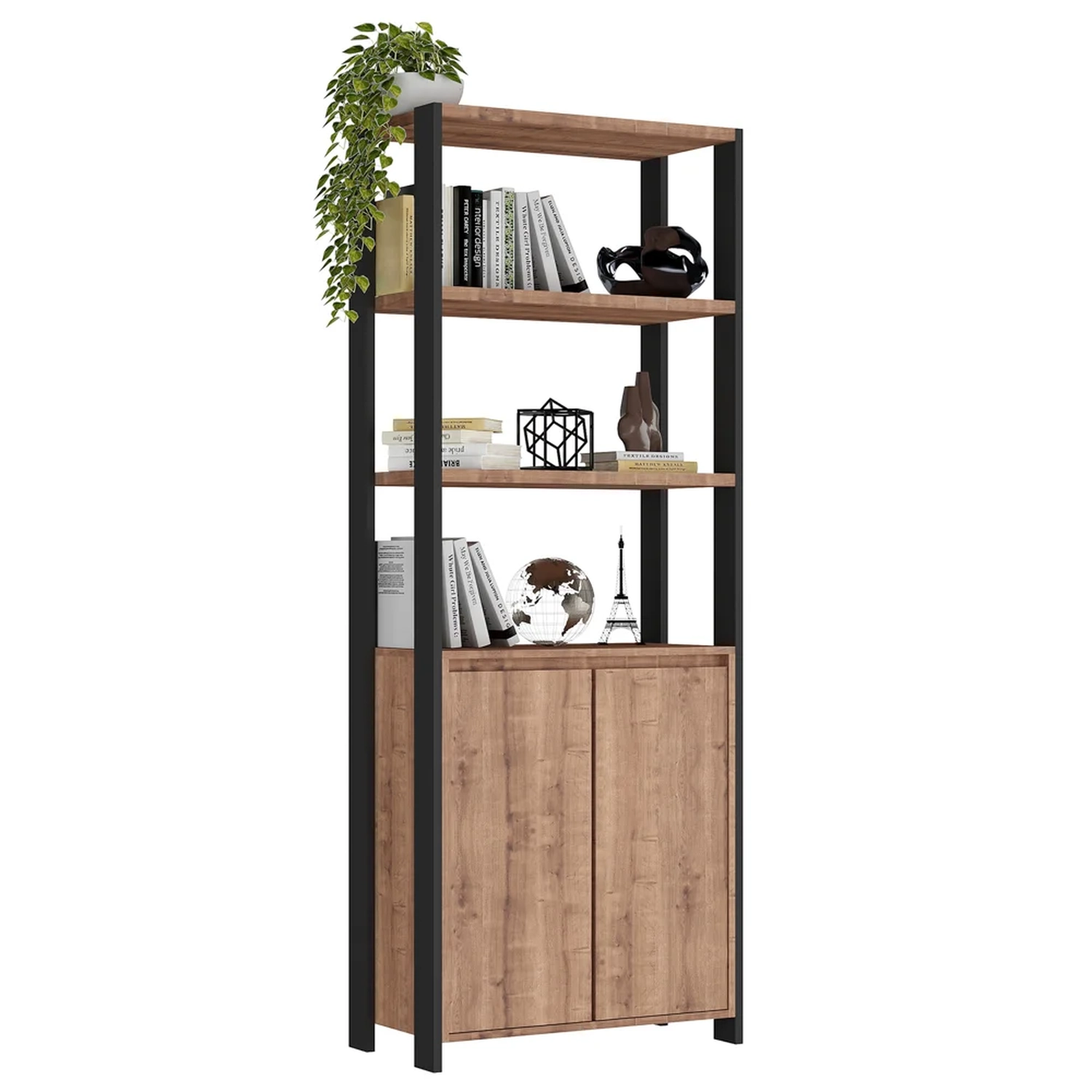 Se você gosta do objetivo e funcional, a estante livreiro é a personificação desse conceito! Ela possui estrutura em MDP e MDF de qualidade, com acabamento em pintura BP fosco que além de garantir durabilidade e resistência o produto, ainda contribui para um design moderno no estilo industrial! Inclusive, conta com 4 prateleiras formando nichos para colocar seus objetos e 2 portas convencionais de dobradiças com amortecedor! Me diz, essa estante é um complemento imperdível né?