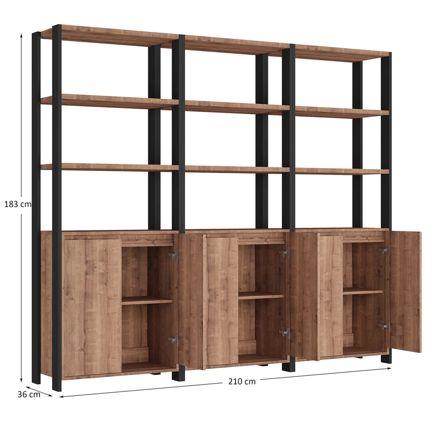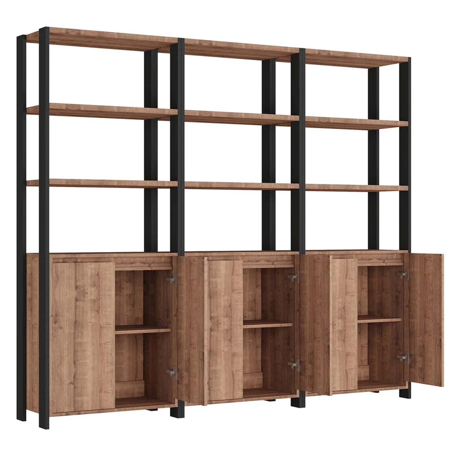 Se você gosta do objetivo e funcional, a estante livreiro é a personificação desse conceito! Ela possui estrutura em MDP e MDF de qualidade, com acabamento em pintura BP fosco que além de garantir durabilidade e resistência o produto, ainda contribui para um design moderno no estilo industrial! Inclusive, conta com 12 prateleiras formando nichos para colocar seus objetos e 6 portas convencionais de dobradiças com amortecedor! Me diz, essa estante é um complemento imperdível né?