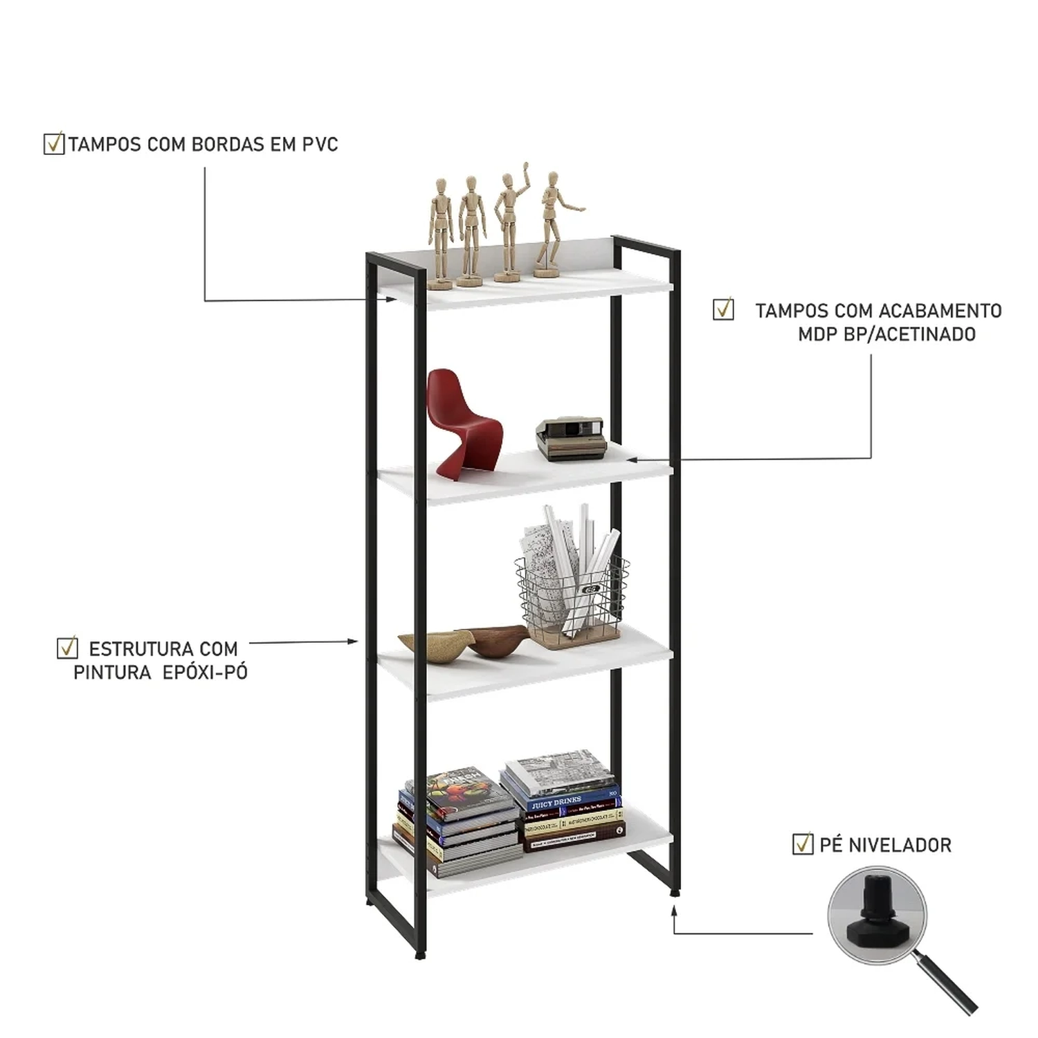 Estante Livreiro Dynamica Industrial 60cm 4 Prateleiras C08 Branco Chess - Mpozenato 81432