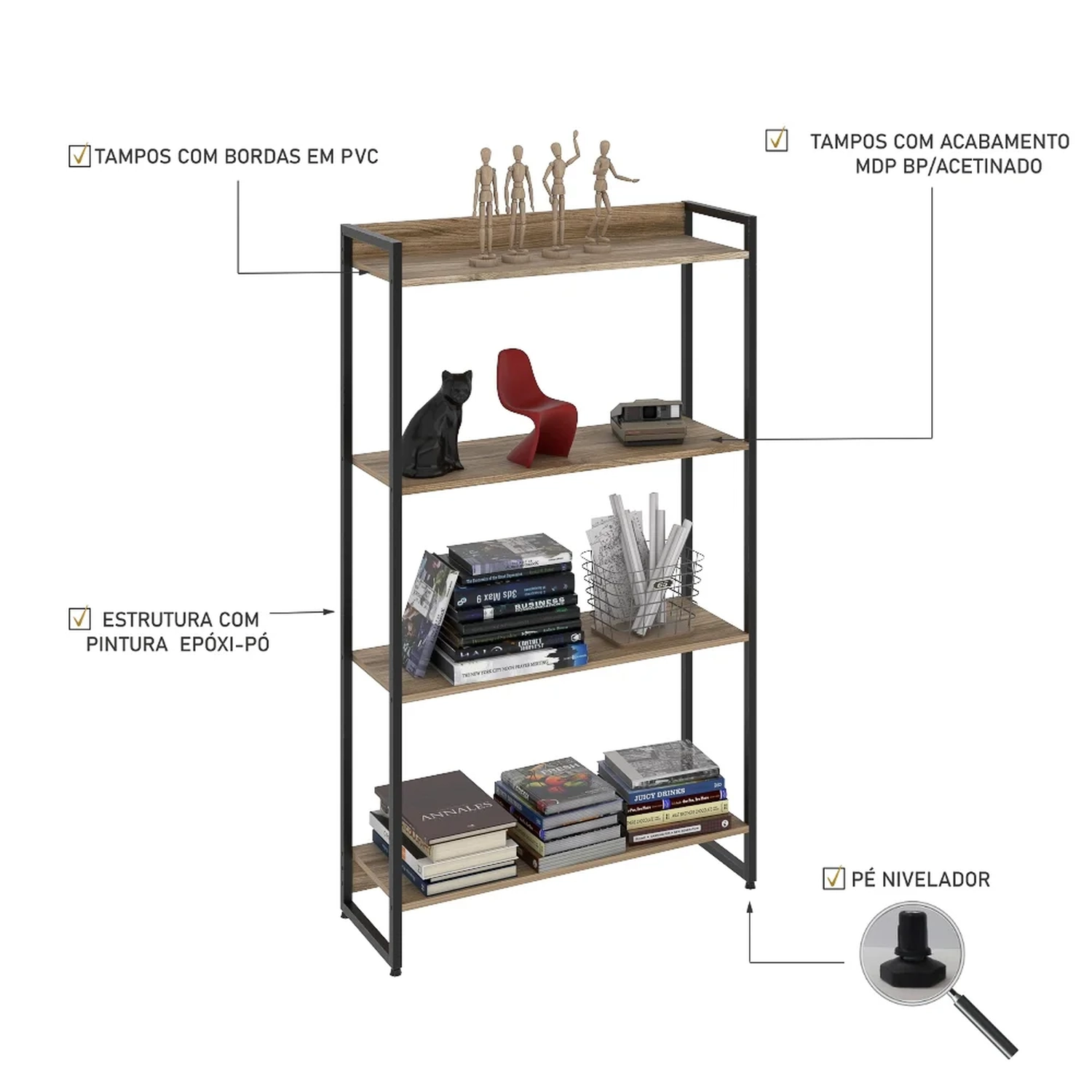 Então, que tal começar a organizar o seu cantinho de trabalho com a Estante Dynamica, da Mpozenato?! Essa estante tem só pontos positivos, a começar pelas 4 prateleiras que são fabricadas em MDP com acabamento BP Acetinado e fitas de borda de PVC, o que garante resistência ao produto. Já a estrutura metálica com pintura epóxi-pó cria um ar mais moderno e despojado, remetendo ao estilo industrial. Além disso, a sua medida compacta com 80cm se adequa a qualquer ambiente, principalmente onde não se tem muito espaço. Ah, o melhor de tudo é que você vai ter um ambiente organizado e cheio de personalidade.