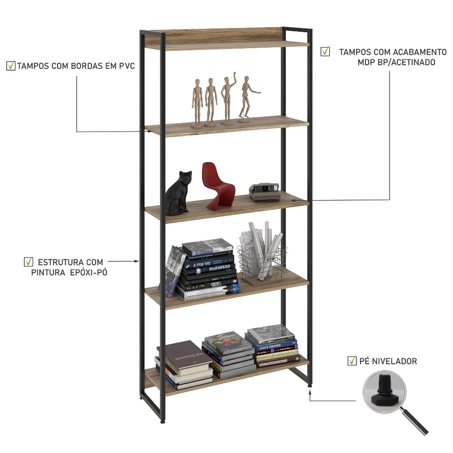 Estante Livreiro Dynamica Industrial 80cm 5 Prateleiras C08 Carvalho - MpozenatoEstante Livreiro Dynamica Industrial 80cm 5 Prateleiras C08 Carvalho - MpozenatoEstante Livreiro Dynamica Industrial 80cm 5 Prateleiras C08 Carvalho - Mpozenato