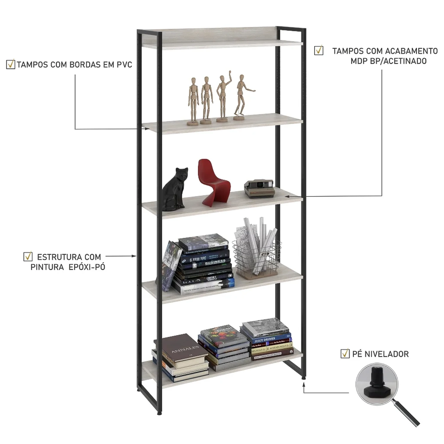 Estante Livreiro Dynamica Industrial 80cm 5 Prateleiras C08 Snow - Mpozenato 75023
