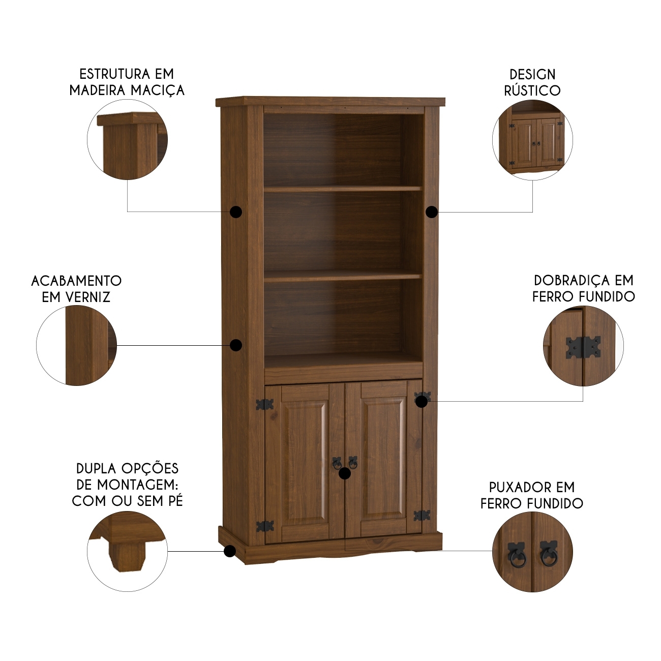 Estante Livreiro Madeira Maciça 2 Portas Henry Imbuia Fosco Z25 - Mpozenato