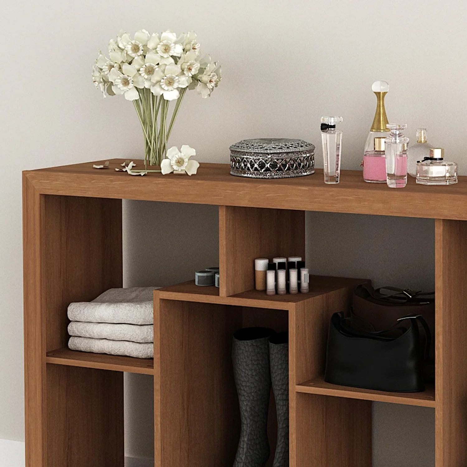Ela pode fazer parte da sala de estar, hall de entrada, quarto ou escritório como estante livreiro se colocada verticalmente, mas se você gosta de inovar também pode virar o item, que fica uma linda sapateira ou aparador repleto de objetos decorativos!! Sensacional, né? Tudo graças a suas 7 prateleiras que formam 8 nichos, ótimos para abrigar itens diversos. Ah, e ela conta com estrutura em MDP e acabamento em pintura UV de qualidade, agregando durabilidade e resistência!