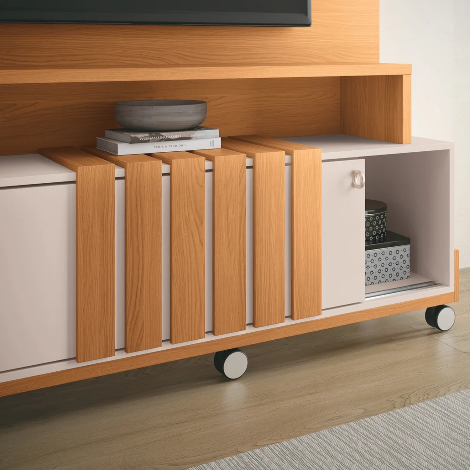 Essa Estante Painel Para TV 65 Pol 180cm 2 Portas Cloe H01 Off White/Cinamomo, da Mpozenato é ideal para inovar a sua Sala De Estar, deixando mais moderna e elegante!
