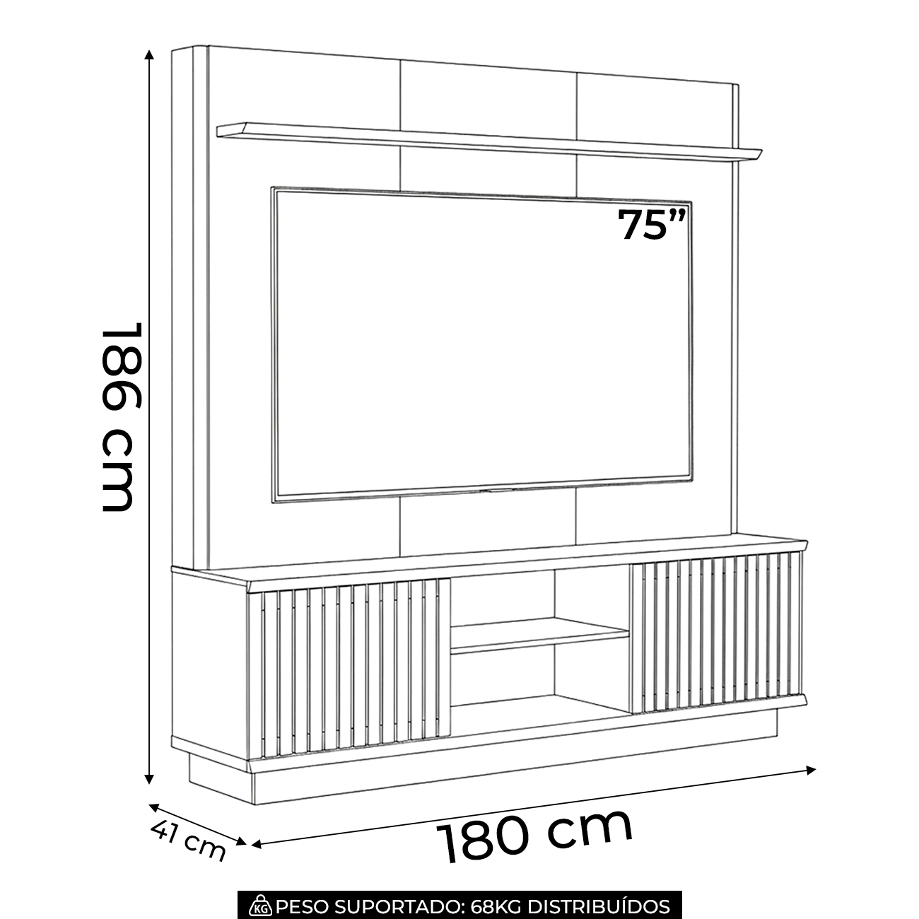 Suporta TV de até: 75 Polegadas.