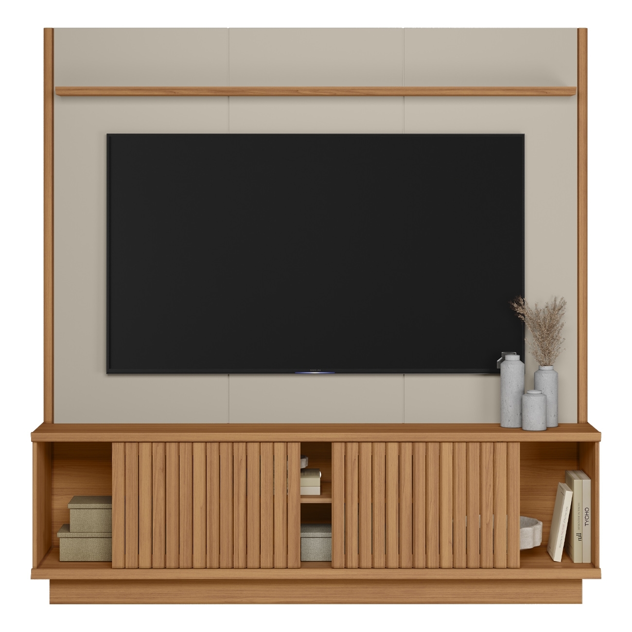 Estante Painel TV 75 Pol 180cm Ripado Hailey Canela/Off L06 - Mpozenato