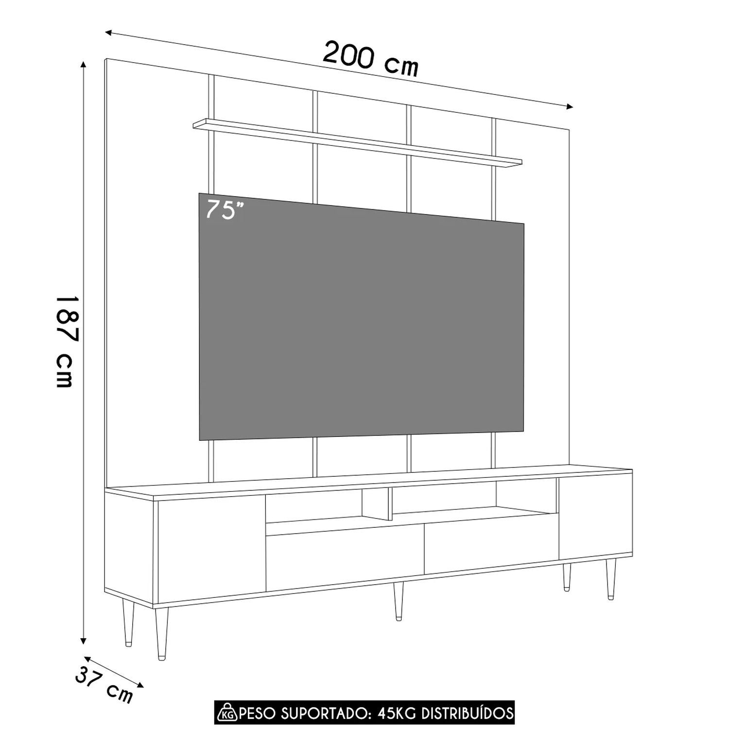 Suporta TV de até: 75 Polegadas.