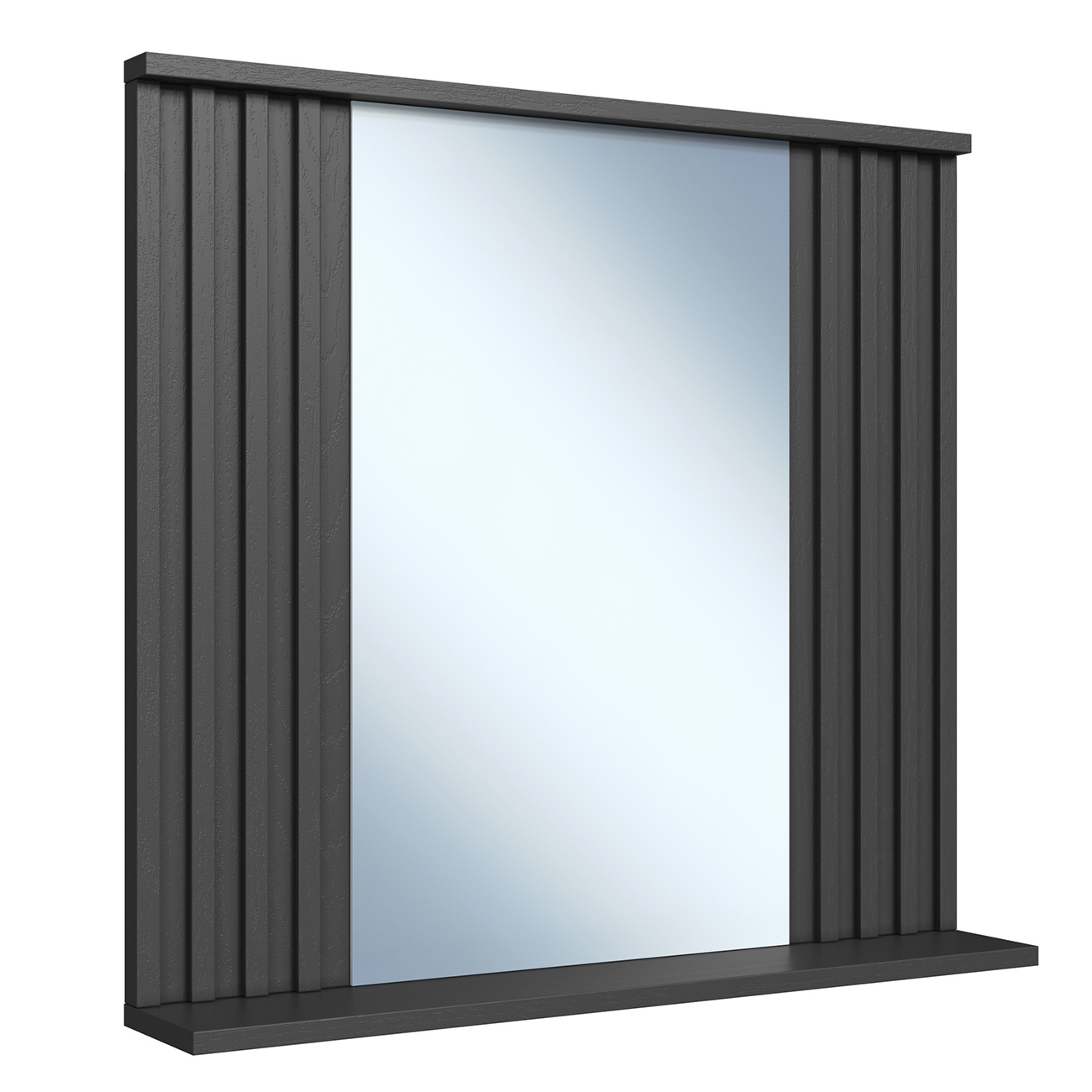 A Espelheira Para Banheiro conta com uma prateleira funcional para acomodar itens de uso diário e detalhes ripados nas laterais, que agregam um toque moderno ao design. É uma peça versátil que combina praticidade com estilo na composição do ambiente.