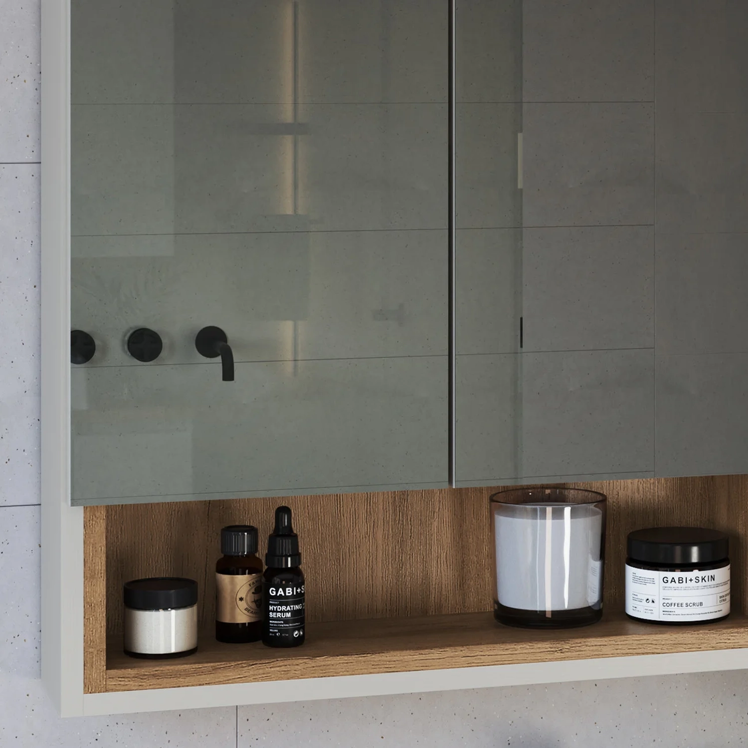A Espelheira de Banheiro, com três nichos abertos e duas prateleiras, é uma ótima escolha para organizar e expor itens de forma mais agradável no Banheiro.