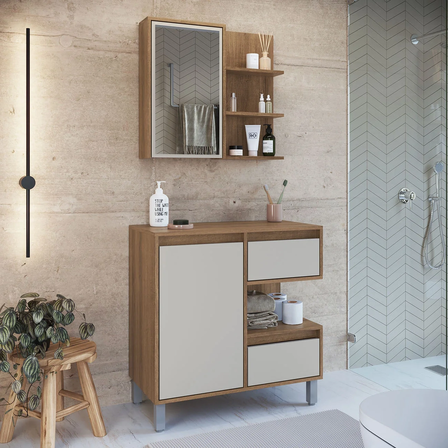Gabinete Banheiro 80cm e Espelheira 70cm Clari Mel/Arenas F10 - Mpozenato