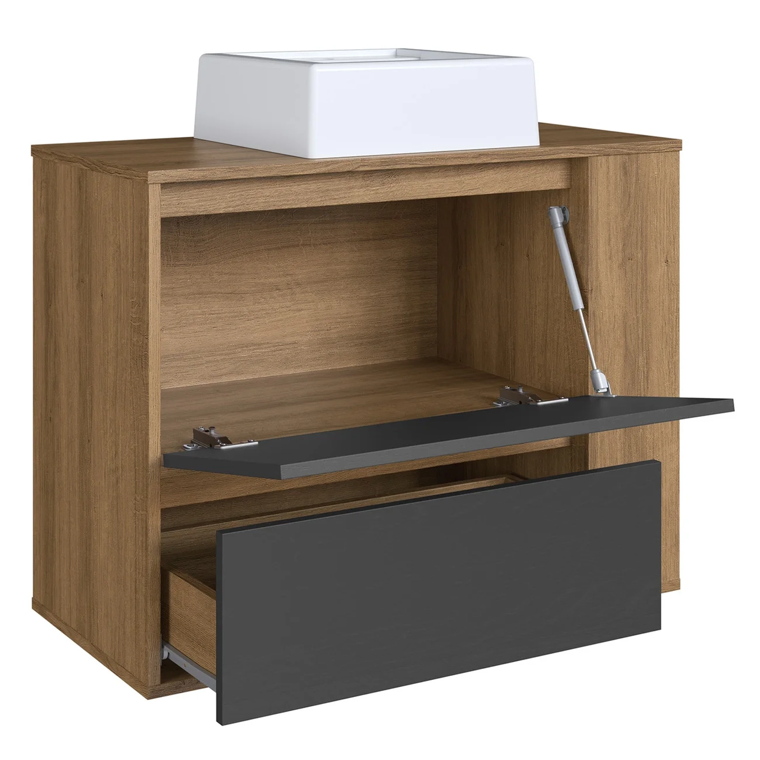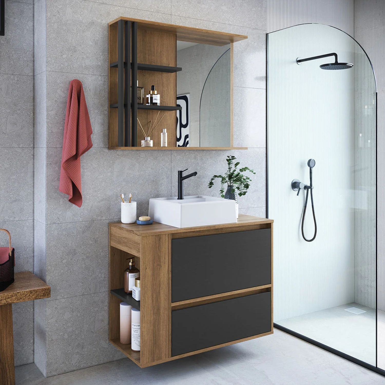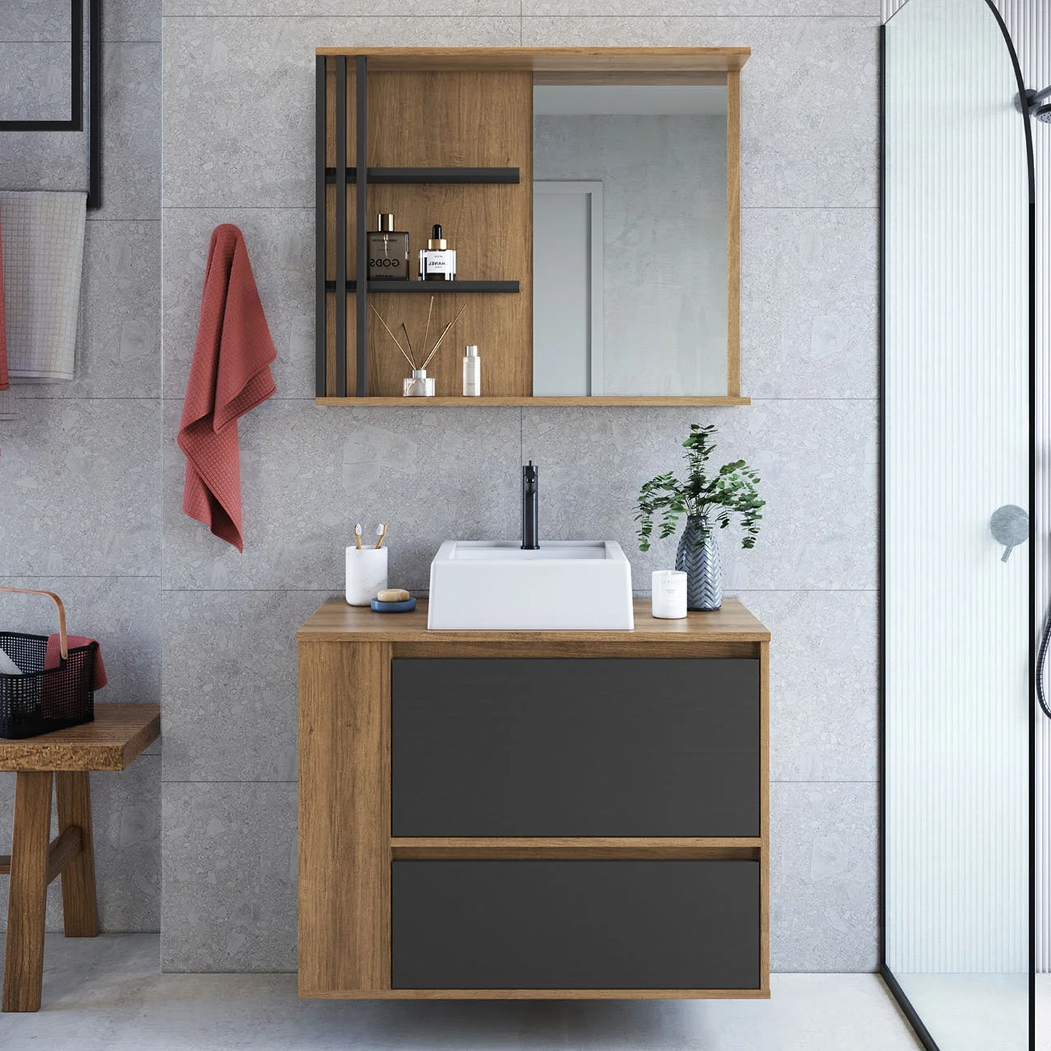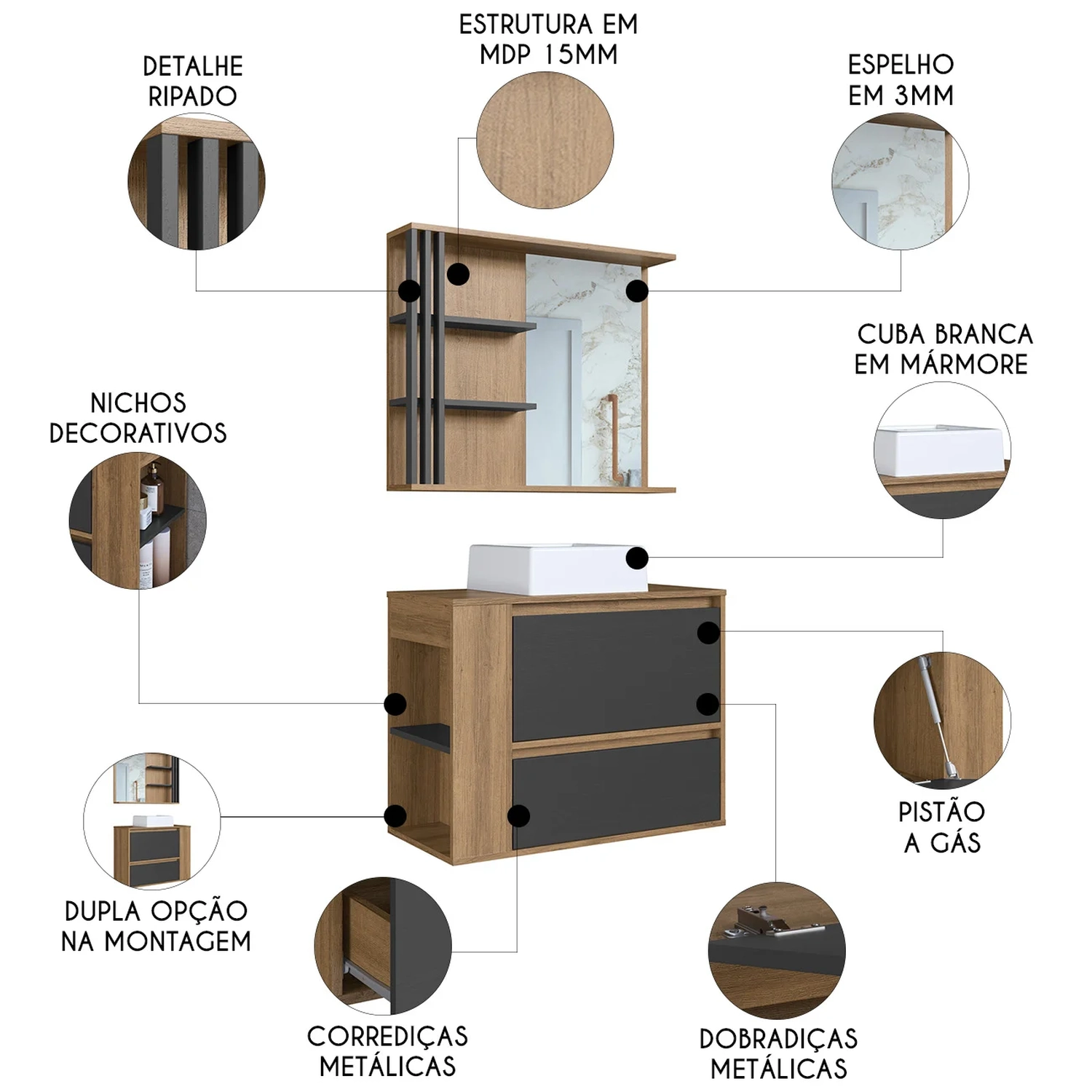 Gabinete Banheiro com Cuba e Espelheira Zeus Mel/Grafite F10 - Mpozenato