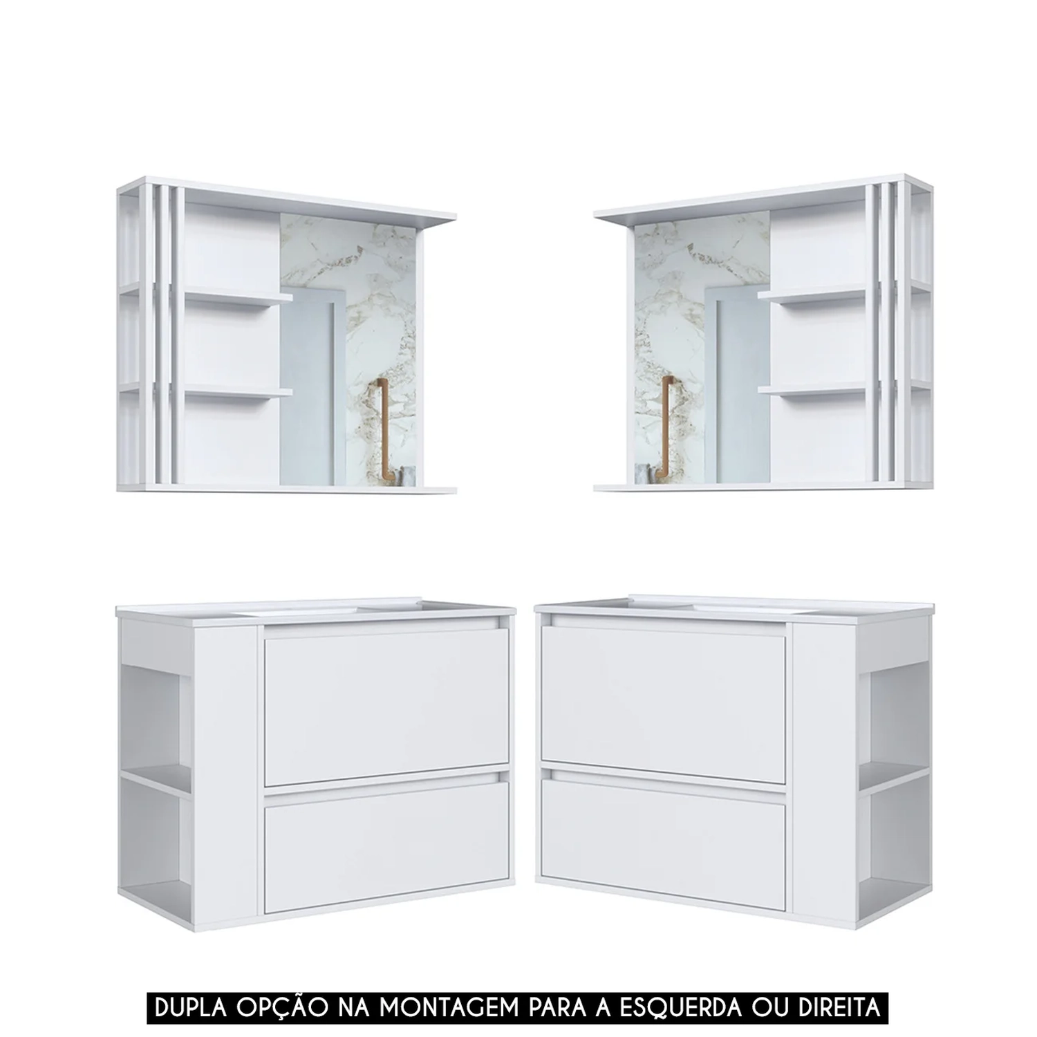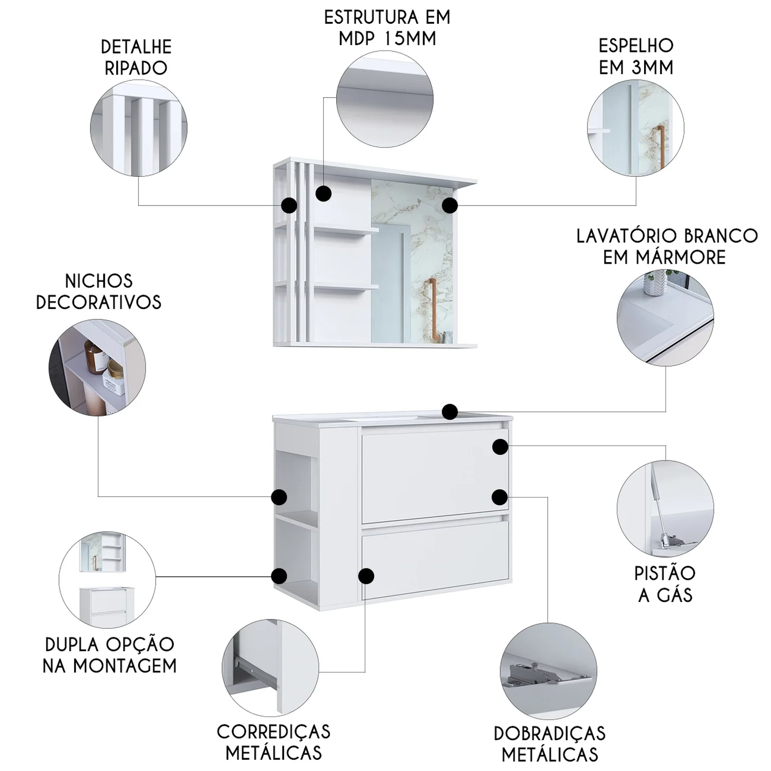 Gabinete Banheiro com Lavatório e Espelheira Zeus Branco F10 - Mpozenato