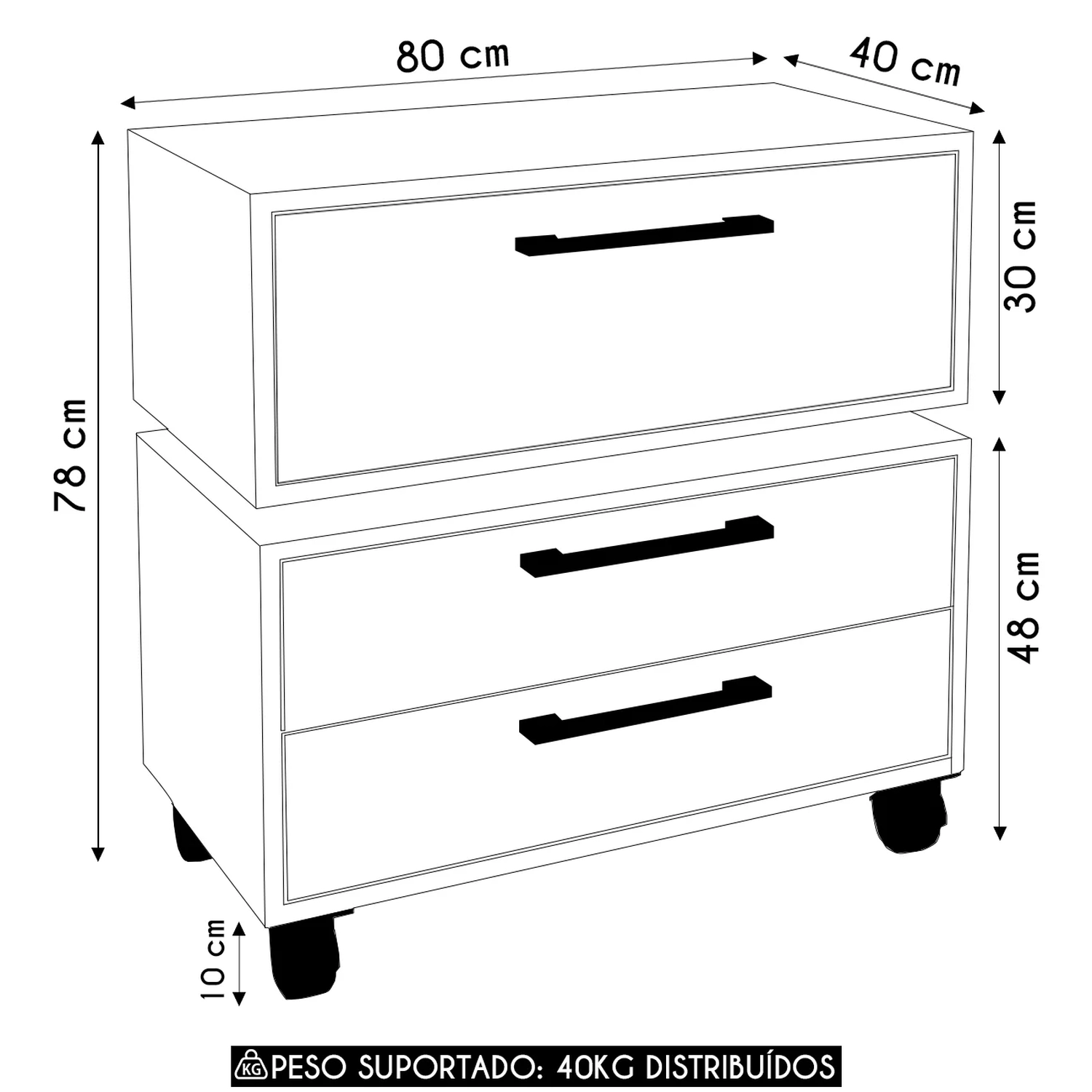 Peso Suportado Distribuído: Gabinete 20 Kg / Gaveteiro 20 Kg.