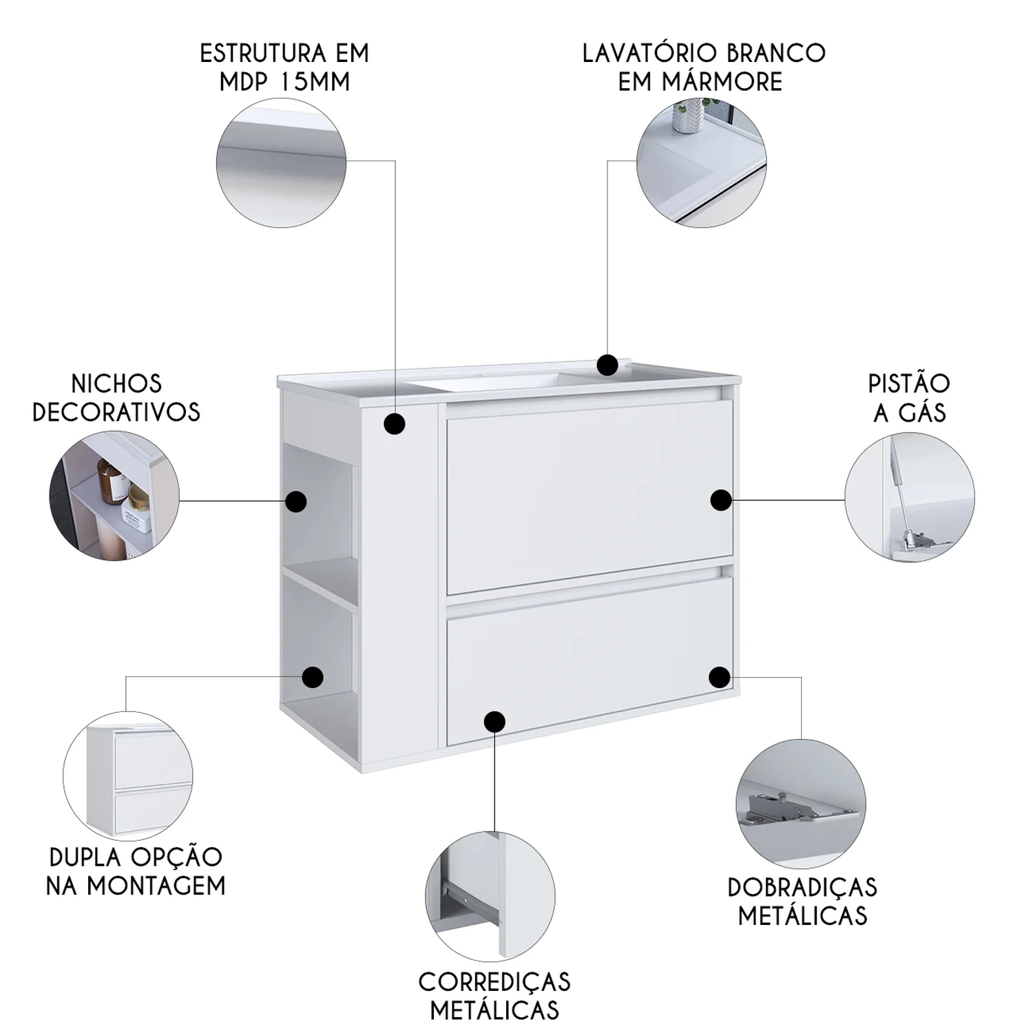 Gabinete de Banheiro 80cm com Lavatório 1 Porta Zeus Branco F10 - Mpozenato