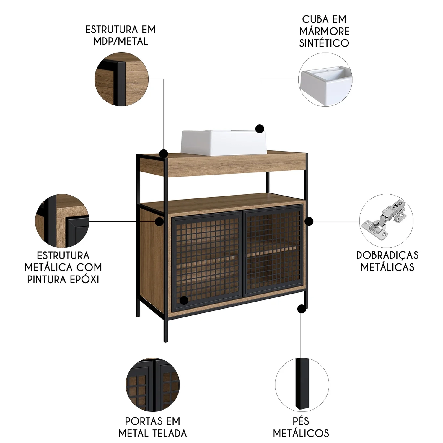 Gabinete de Banheiro 80cm Industrial com Cuba Liny Mel Z54 - Mpozenato