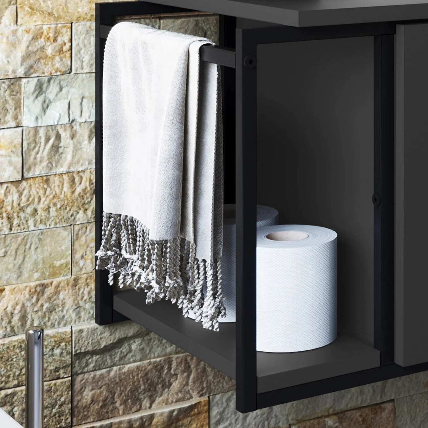 Um Gabinete Para Banheiro que une sofisticação e praticidade, com um design industrial sua estrutura em MDP e metal, tampo e nichos garantem resistência e durabilidade, além de um visual robusto.