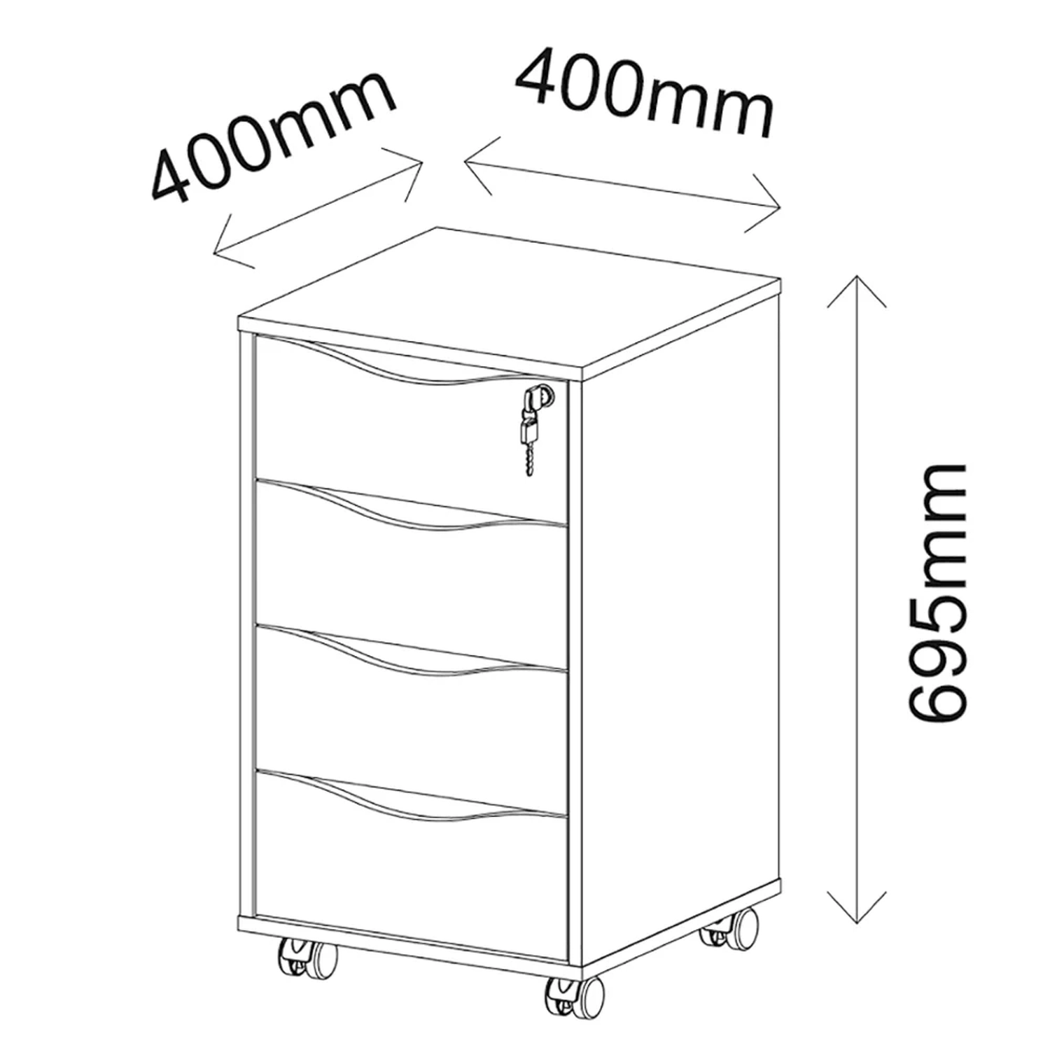 Já as 4 gavetas com corrediças metálicas e fechadura frontal proporcionam mais organização dos papéis, documentos e outros itens importantes que precisam estar sempre à mão. Sem contar que o tampo ainda pode servir de apoio para o celular, itens decorativos ou até mesmo para aquele cafezinho rápido. Ah, não podemos esquecer dos pés rodízio que deixa a locomoção mais simplificada, seja apenas para mudá-lo de lugar ou na hora da faxina.
