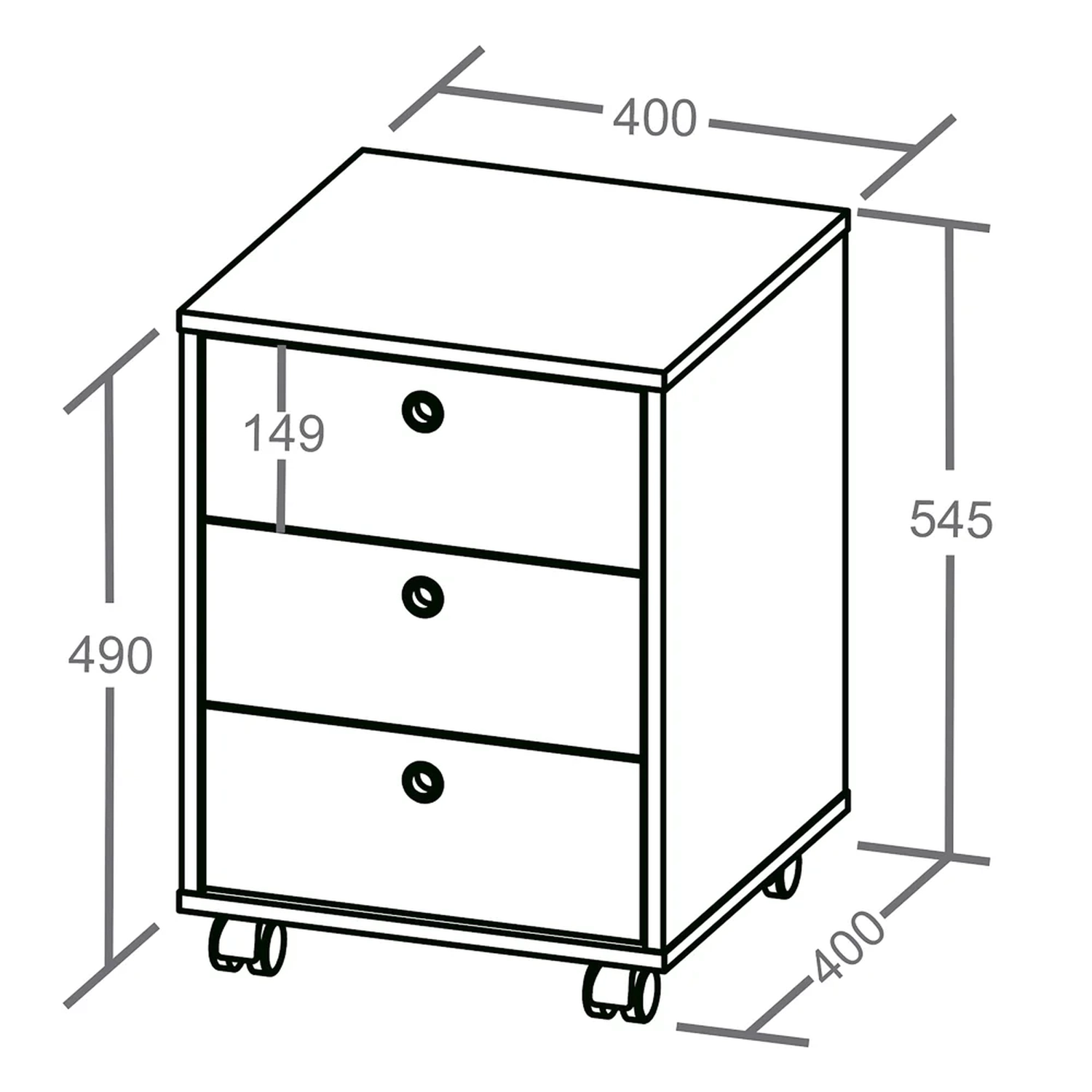 Fabricado em MDP com acabamento em BP fosco, garante resistência e durabilidade. Possui 3 Gavetas com bordas em PVC e rodízios que proporcionam mobilidade e facilidade no dia a dia.