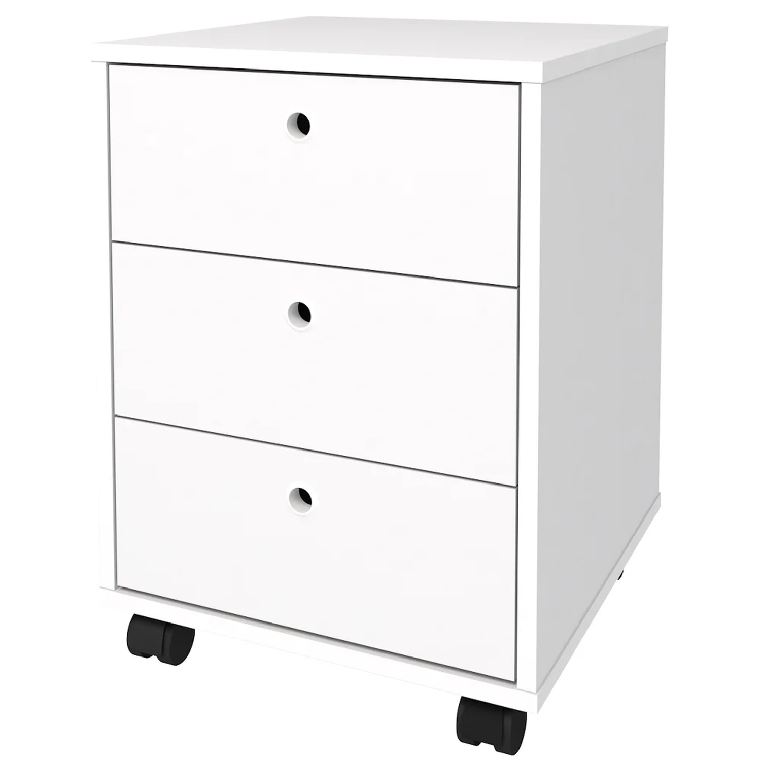 Gaveteiro Escritório 60cm Rodízios 3 Gavetas New Branco - Artany