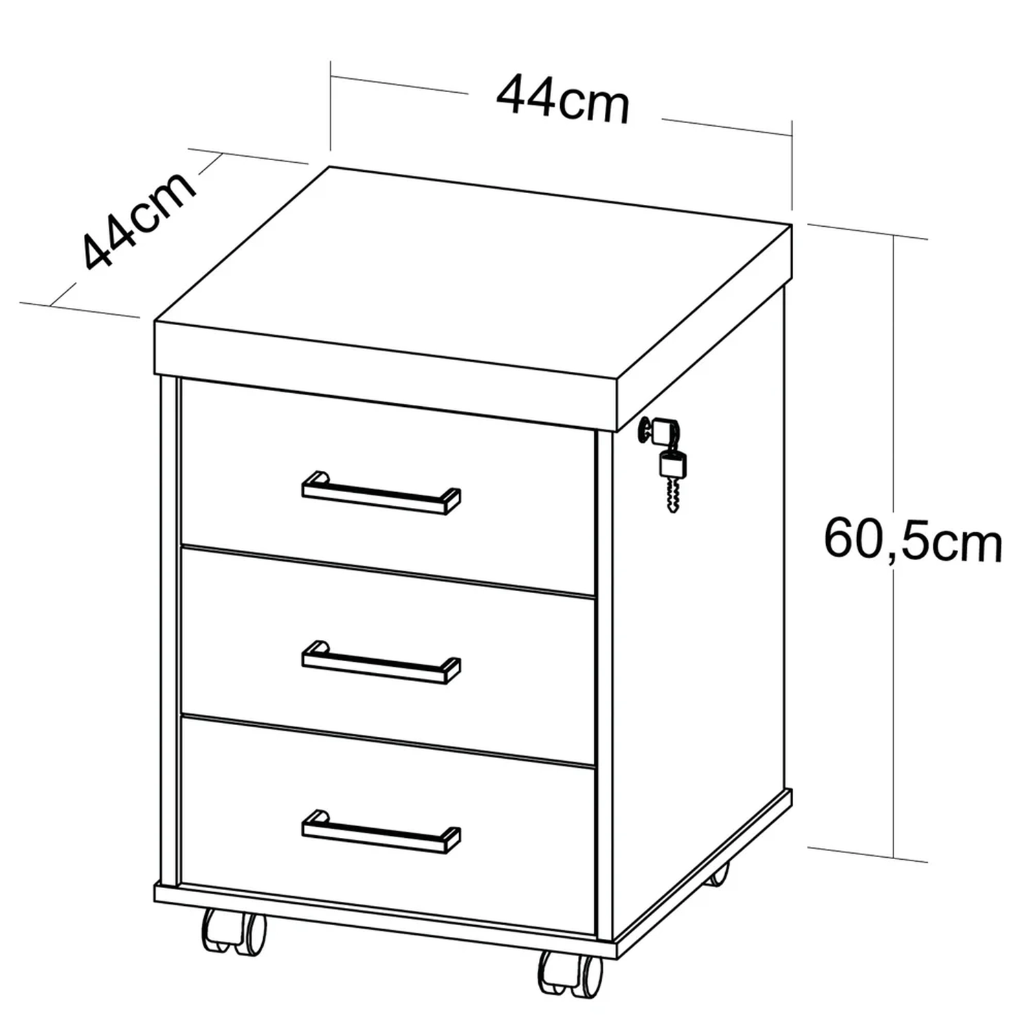 Com um design moderno, linhas retas e cores sóbrias, esse gaveteiro 3 gavetas é perfeito para ser colocado abaixo da bancada de trabalho ou até mesmo como extensão na lateral da mesa. Mas não importa o lugar que você queira dispô-lo, os rodízios facilitarão e muito essa dinâmica, tornando a mudança de lugar mais prática. Além disso, esse gaveteiro ainda conta com chave para trava das gavetas, ou seja, você ainda ganha em segurança caso deixe pertences de valor ou documentos guardados.