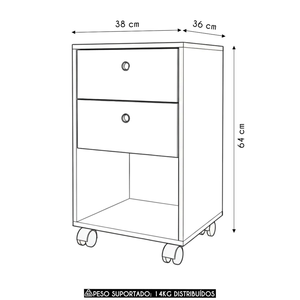 Com estrutura em MDP oferece resistência e durabilidade no uso diário, suas duas gavetas com corrediças telescópicas e puxadores em cava com acabamento em poliestireno, garantindo abertura suave e visual clean.