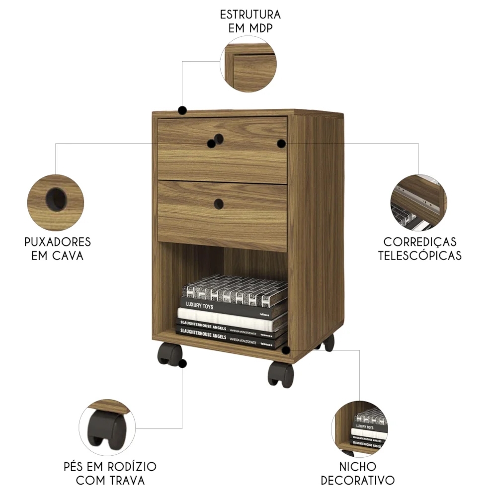 Gaveteiro Escritório 38cm 2 Gavetas e Nicho Una Mel C01 - Mpozenato