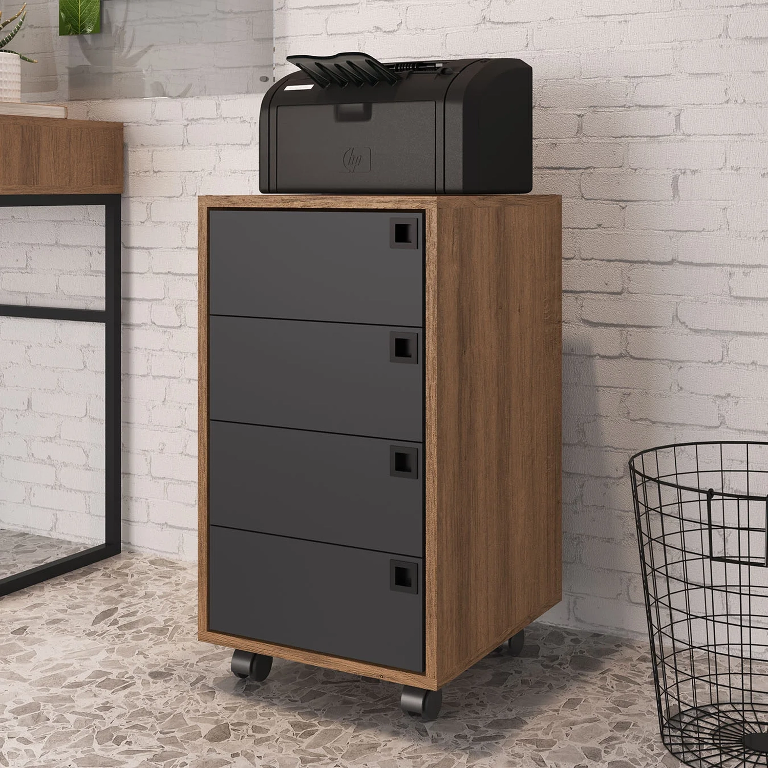 Gaveteiro Escritório 4 Gavetas com Rodízios Eden Grafite/Mel Z54 - Mpozenato