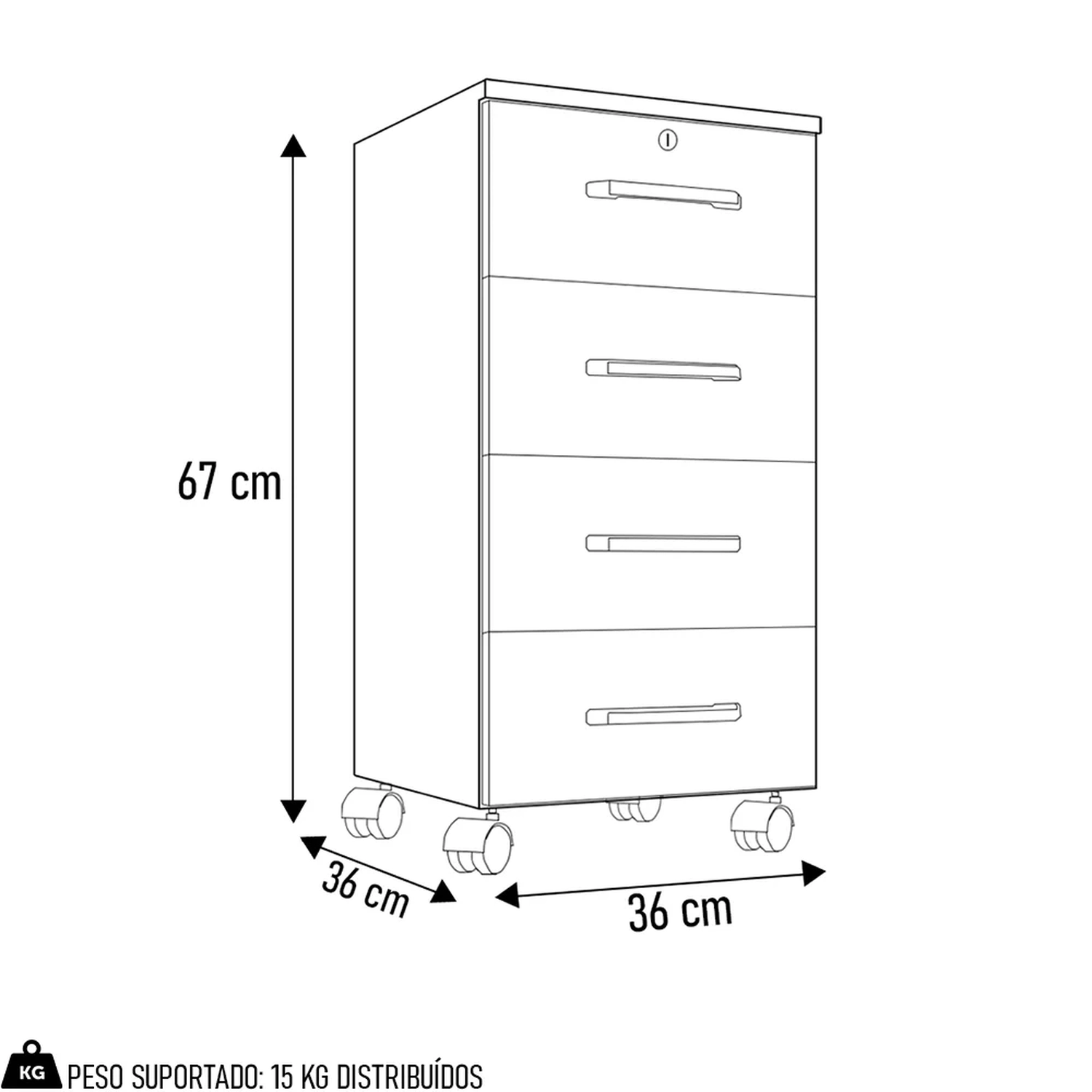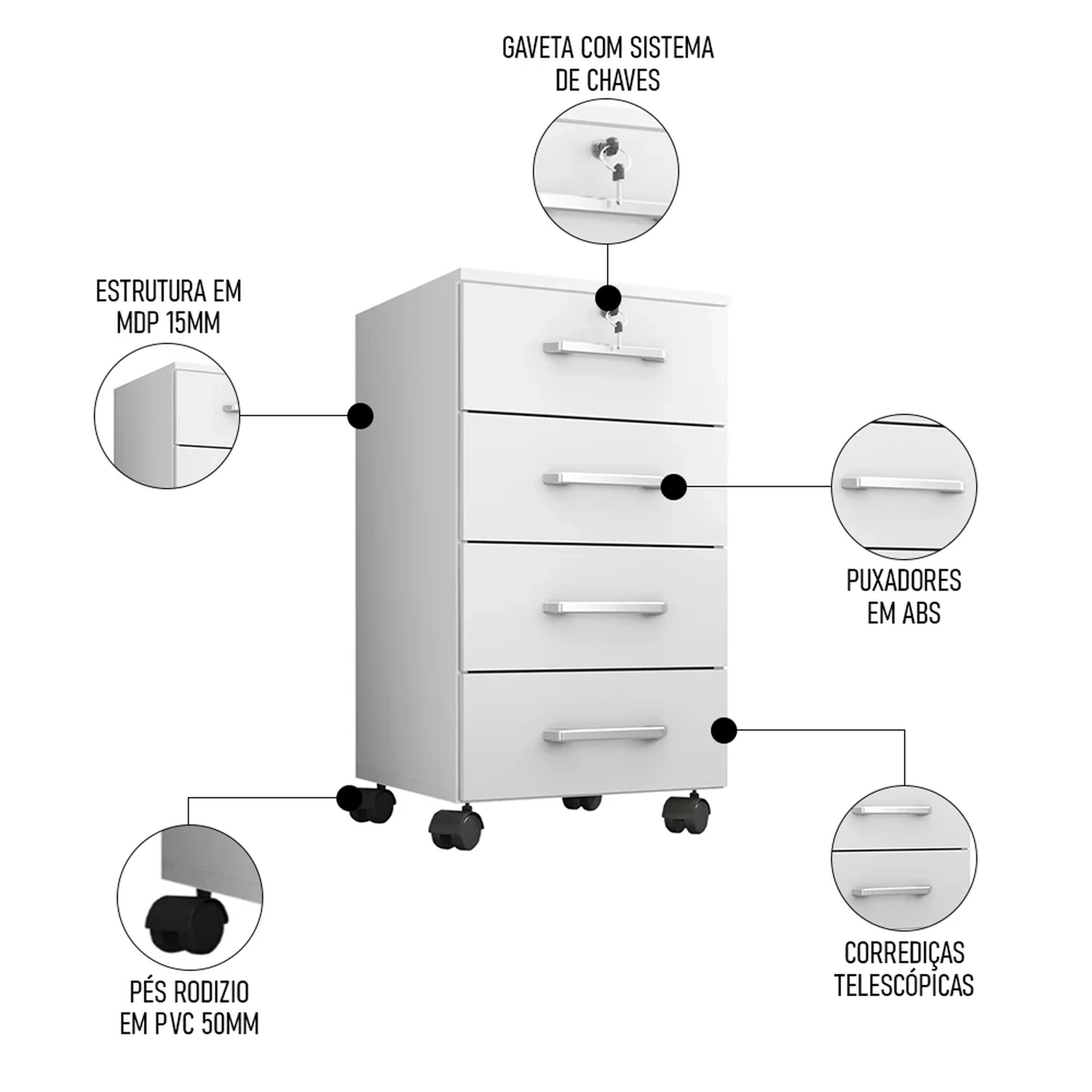 Quantidade de Gavetas: 4 Gavetas.