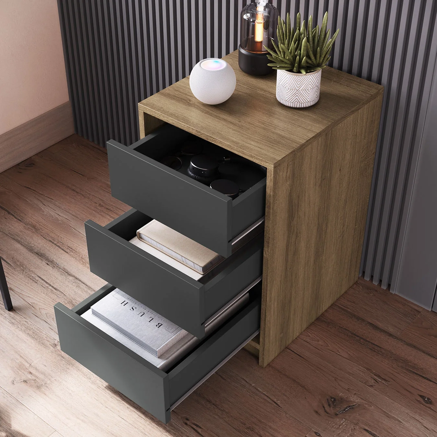 Este Gaveteiro é ideal para quem busca praticidade e organização, ele se adapta com facilidade a diversos ambientes sendo uma excelente escolha para espaços menores que exigem soluções inteligentes.