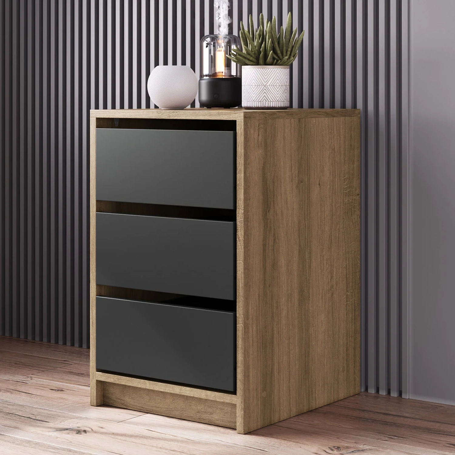 Gaveteiro Escritório com 3 Gavetas Mirela Grafite/Mel Z54 - Mpozenato