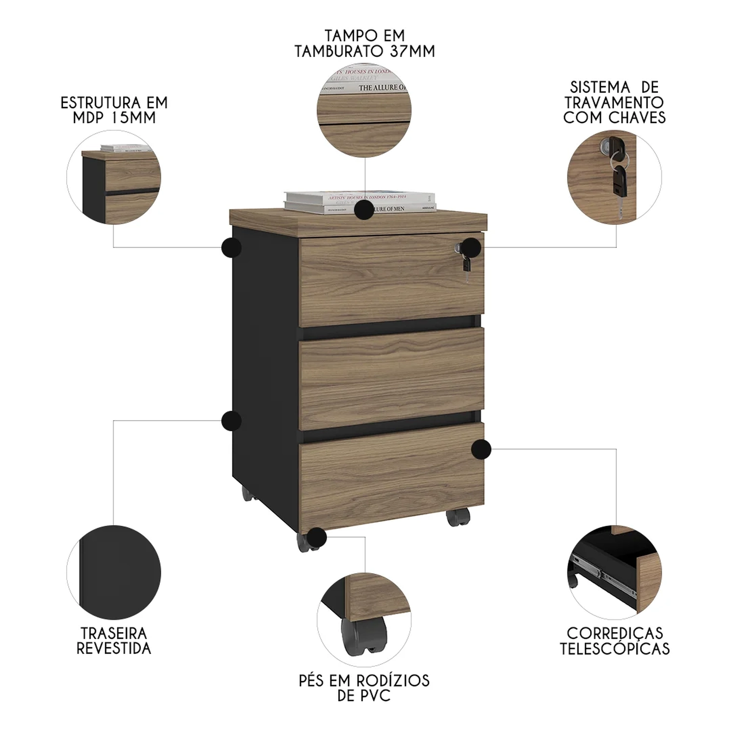 Transforme seu escritório ou home office com o incrível Gaveteiro para Escritório com Rodízios Corp A06 Nogal/Preto, da Mpozenato! Com um design moderno e elegante, ele é a peça que faltava para deixar seu ambiente mais organizado e estiloso.