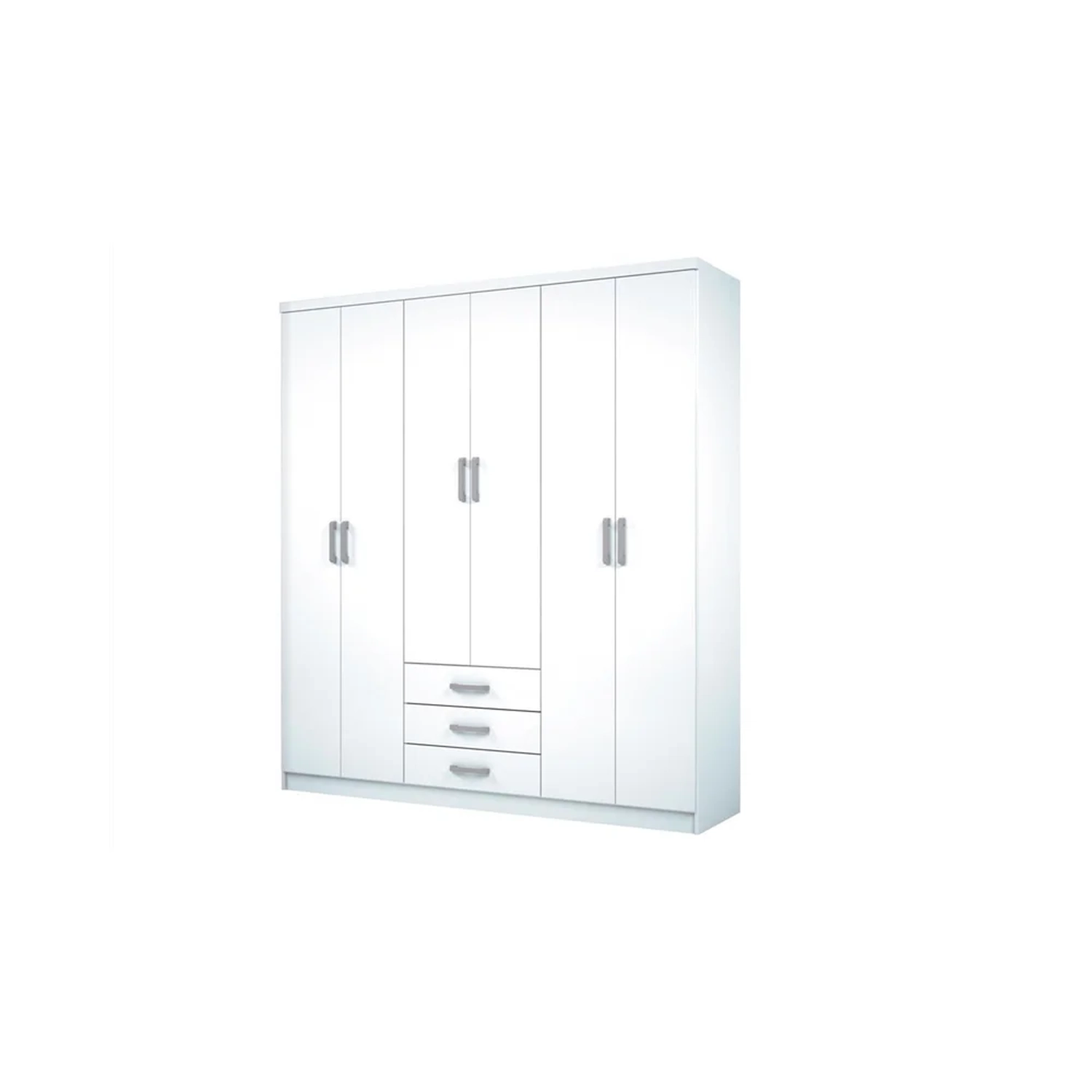 O Guarda Roupa Caju 6 Portas de Abrir Branco é o móvel perfeito para manter seu quarto organizado, pois ele é muito espaçoso e pode acomodar suas roupas, malas, sapatos e enxovais tranquilamente, o guarda roupa possui sua estrutura confeccionada em MDP e acabamento em pintura U.V. texturizada que da maior durabilidade ao móvel. O móvel possui 09 nichos para manter tudo bem organizado e alguns diferenciais que são: amplo espaço interno, espaço para roupas longas, cabideiros/calceiros em alumínio, 03 gavetas internas e puxadores ABS cromados. Aproveite e leve para sua casa!
