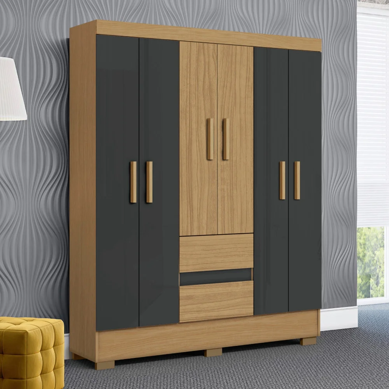 Guarda Roupa Casal 150cm 6 Portas Raely Atacama/Grafite A15 - Mpozenato
