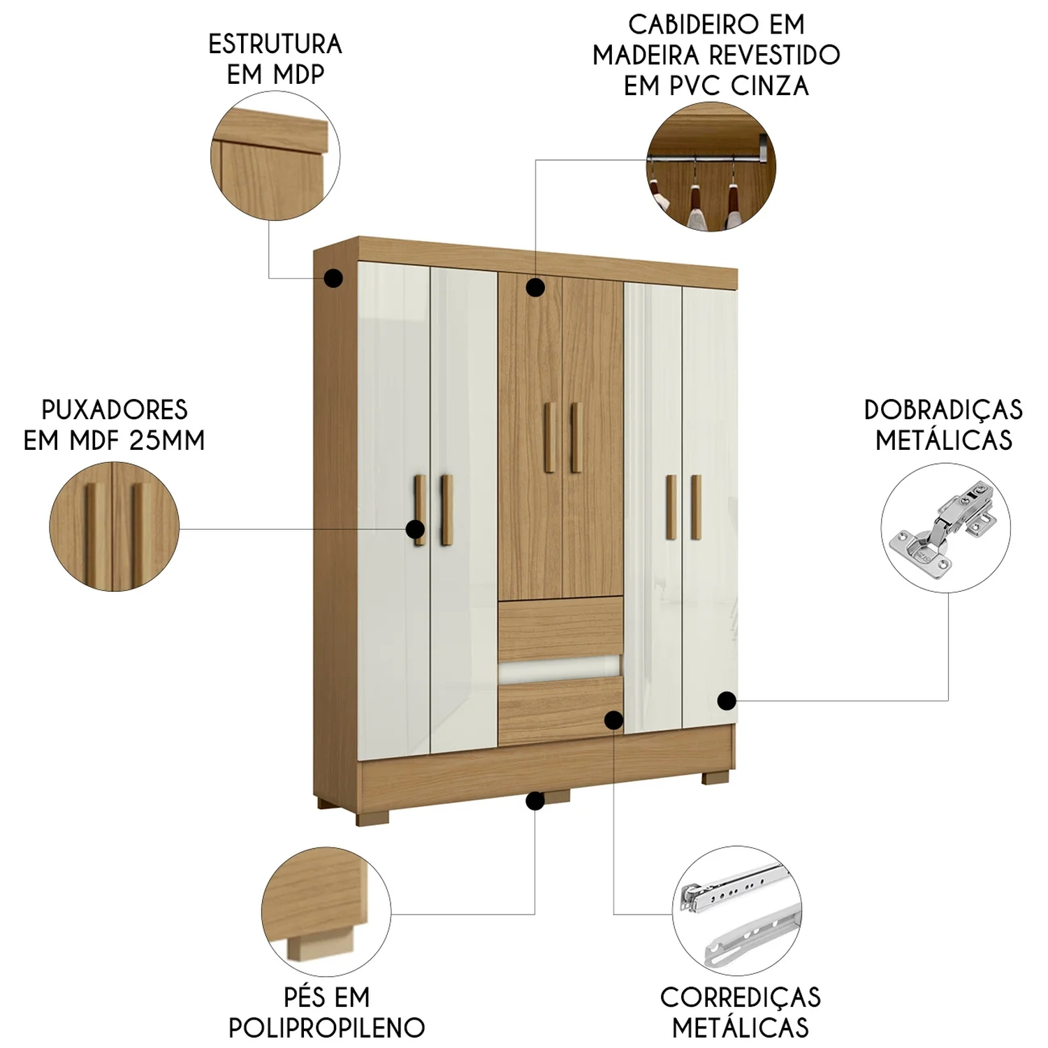 Guarda Roupa Casal 150cm 6 Portas Raely Atacama/Off A15 - Mpozenato