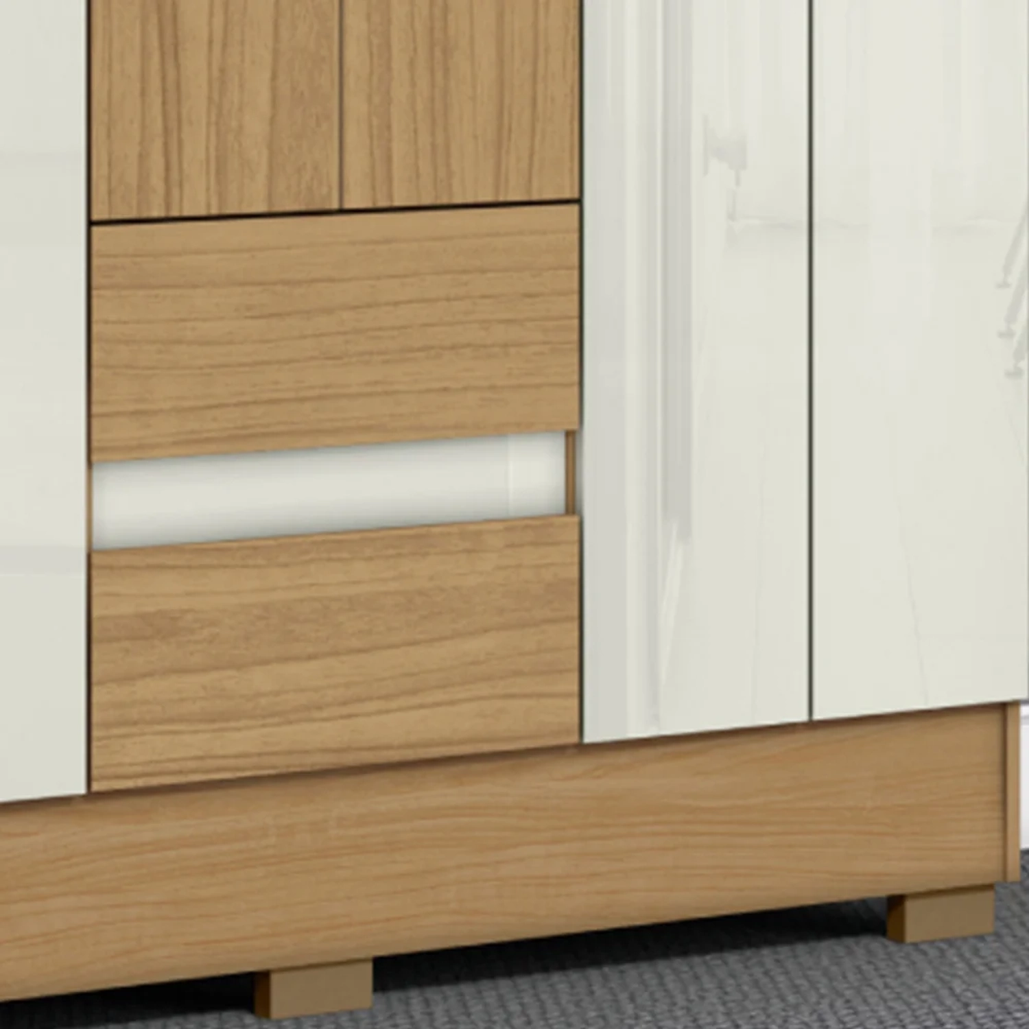 Os puxadores são em MDF 25mm, combinando robustez com um visual moderno. Os pés em polipropileno oferecem firmeza, proteção e robustez ao Guarda Roupa Grande.