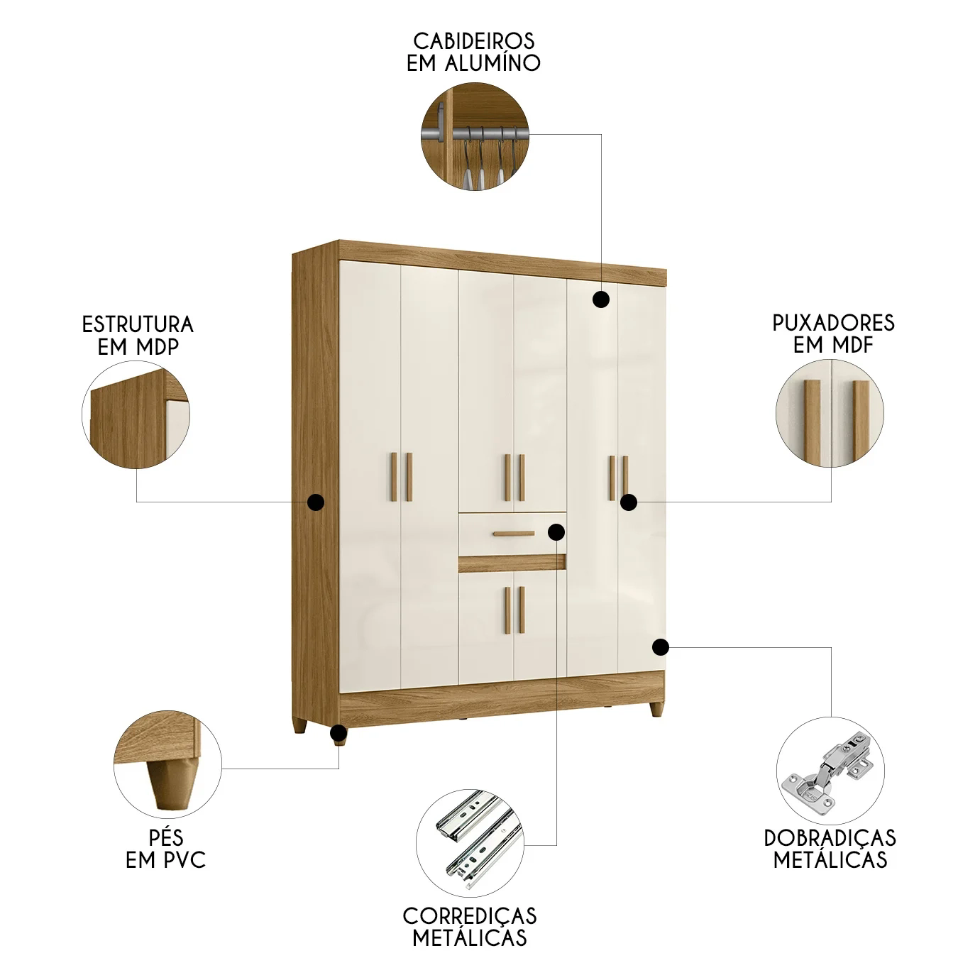 Guarda Roupa Casal 165cm 8 Portas Parla Freijó/Off Z17 - Mpozenato