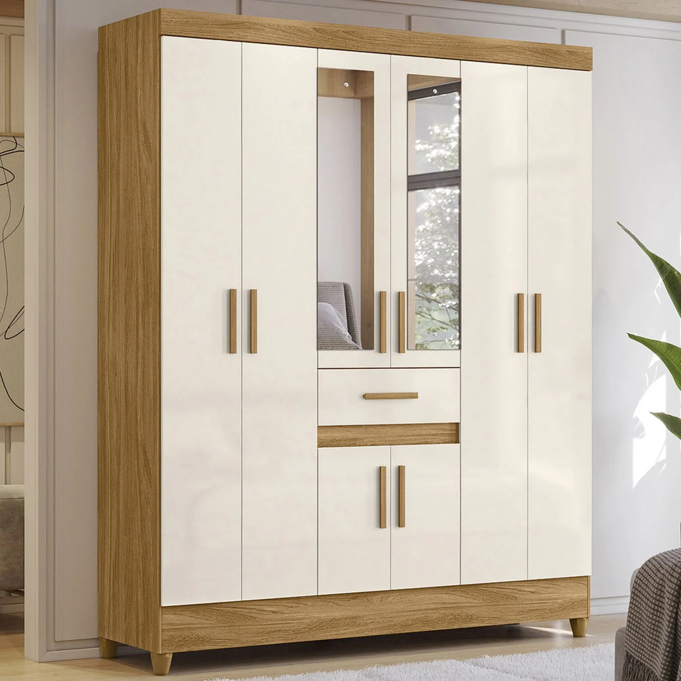 Prático, moderno e cheio de estilo, esse Guarda Roupa de MDP com oito portas é a solução ideal pra quem precisa de espaço e organização no dia a dia. O destaque vai pras duas portas com espelho, que além de funcionais, dão um toque elegante ao ambiente.