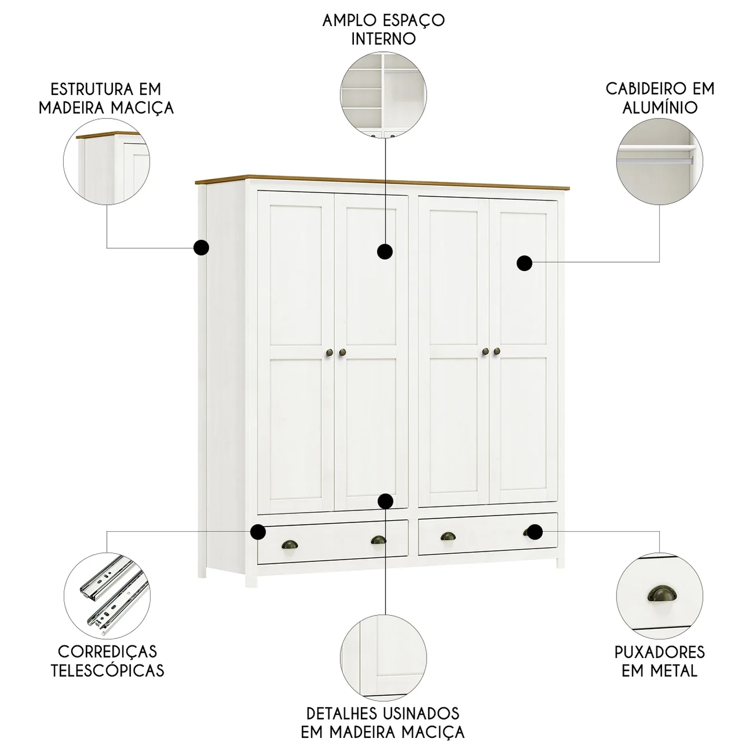 Guarda Roupa Casal 176cm 4 Portas 2 Gavetas Lázio Branco/Freijó F07