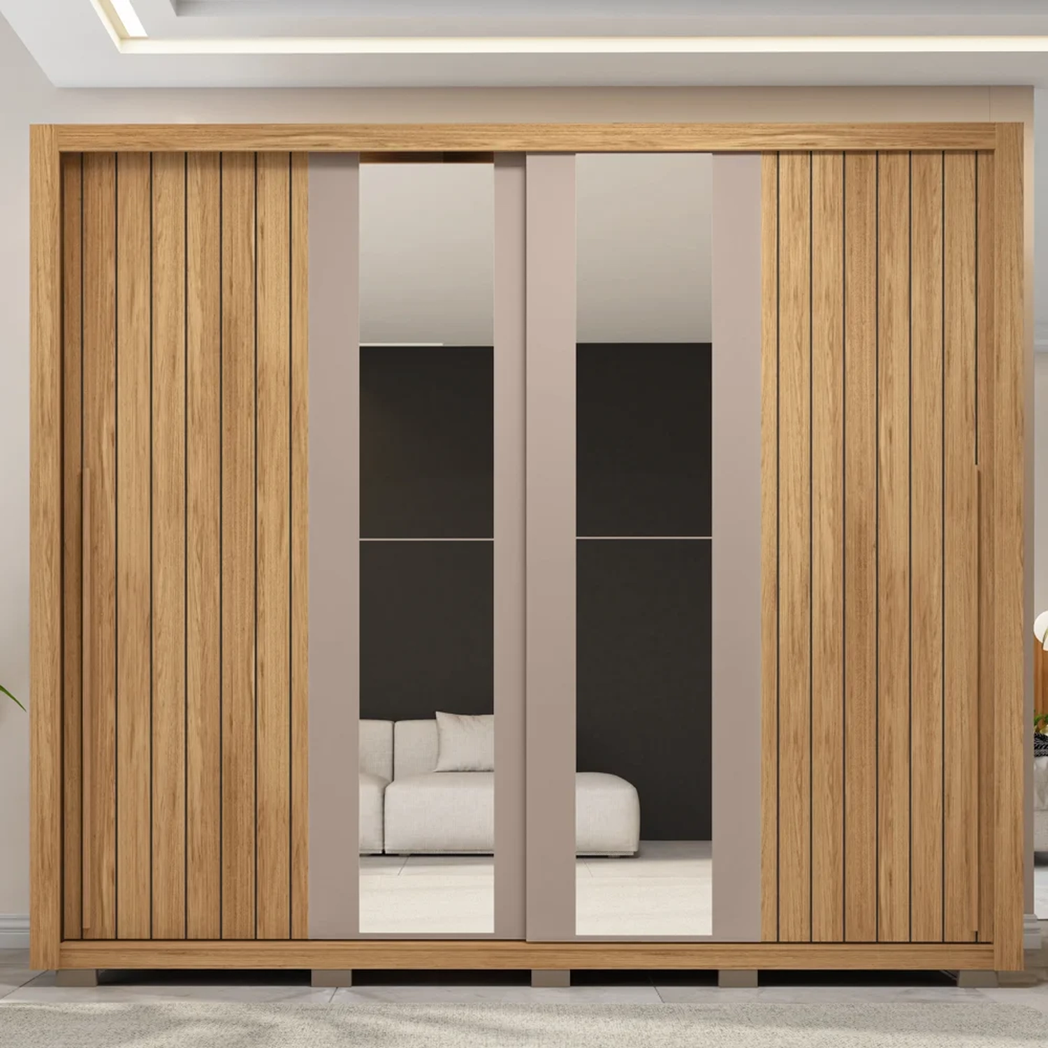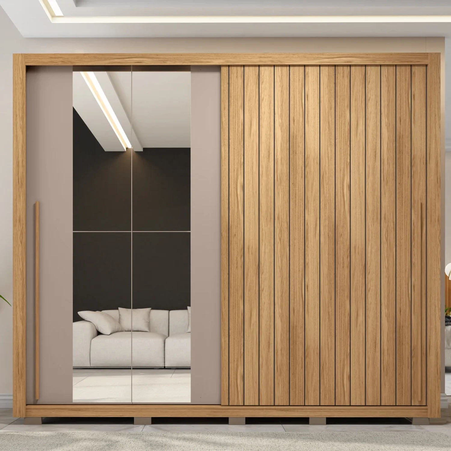 O Guarda Roupa Casal 2 Portas de Correr com Espelho Moviment Buriti/Fendi, da Caemmun, redefine o armazenamento moderno com um toque de classe.