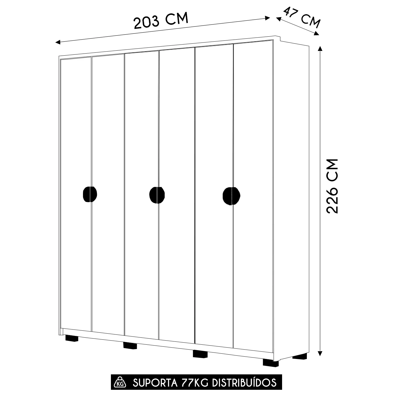 Peso Suportado: 77 kg distribuídos.