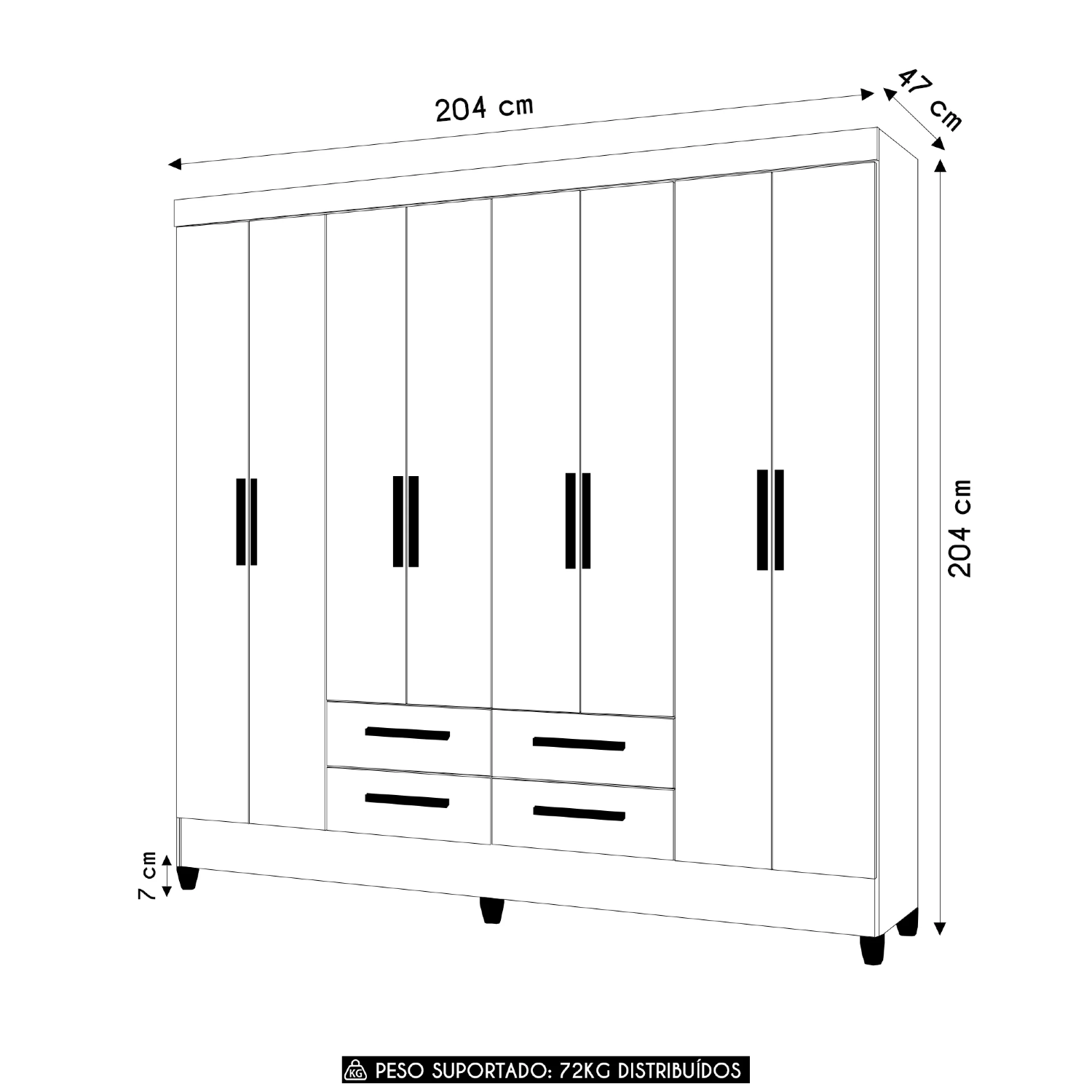 Este Guarda Roupa de oito portas é a solução completa para quem busca organização e elegância para o Quarto Casal. Equipado com dobradiças metálicas, garante abertura suave e durabilidade no uso diário, e trazem mais praticidade à rotina.