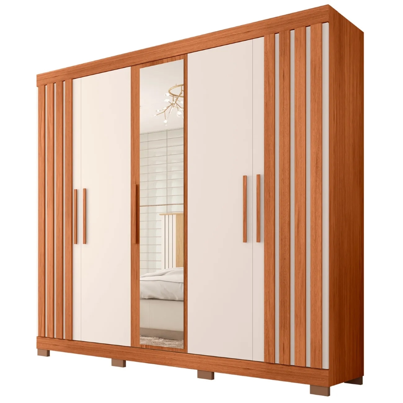 Guarda Roupa Casal 216cm 5 Portas Espelho Sulla Freijó/Off C01 - Mpozenato