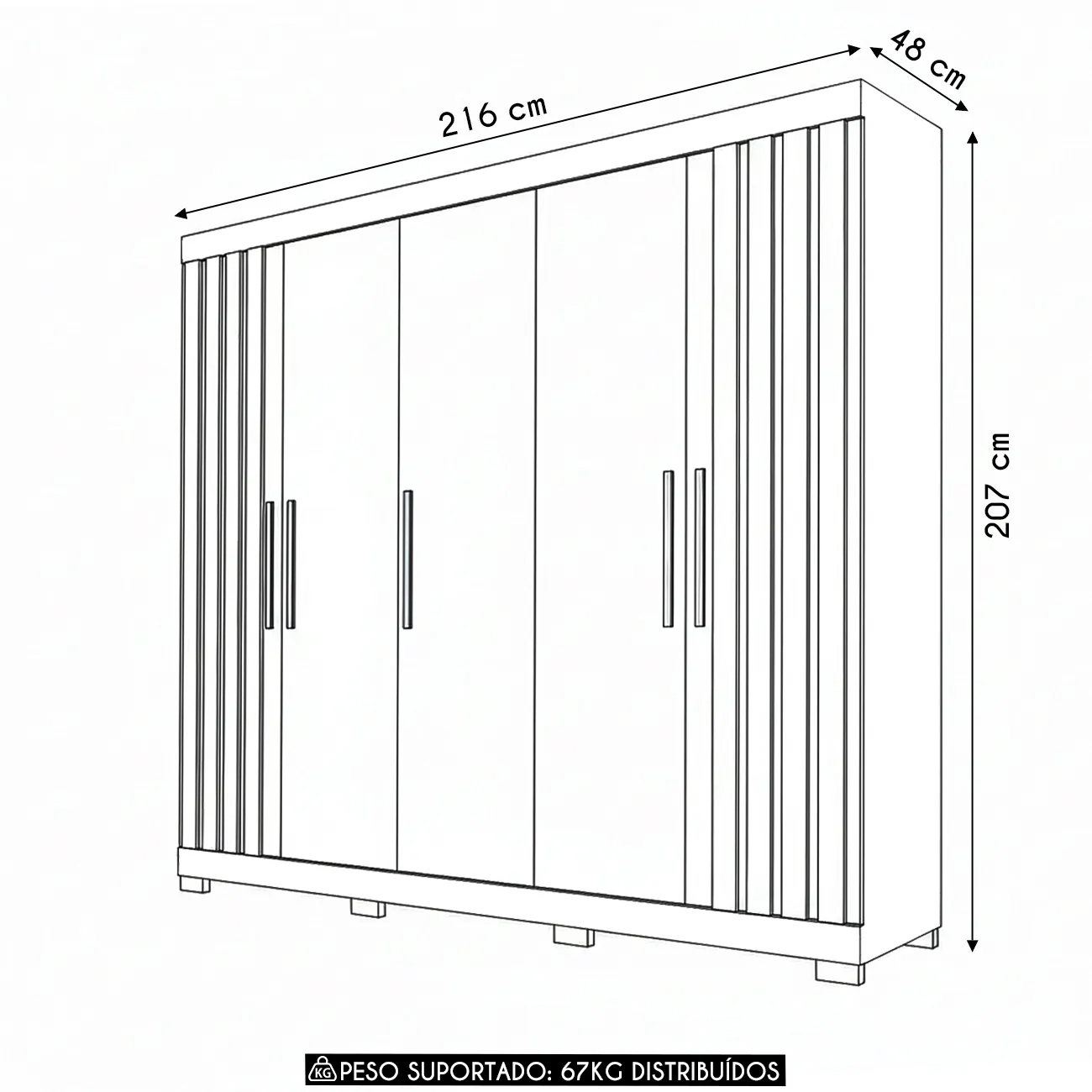 Peso Suportado: 67 Kg distribuídos.