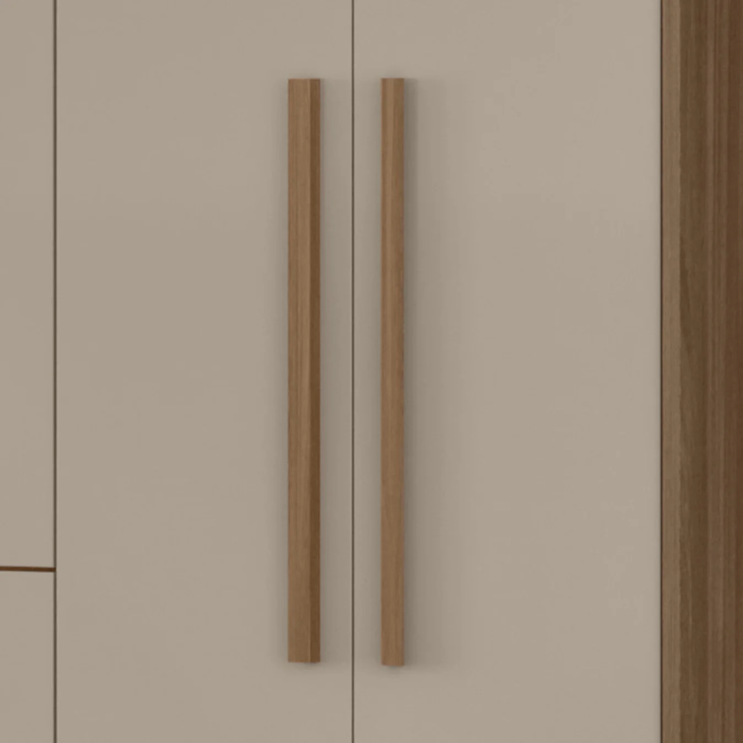 Os puxadores em MDF nas portas e as gavetas com puxadores cava, agregam charme ao design, oferecendo um toque de sofisticação aliado à resistência. Esse Roupeiro é altamente funcional, contando com seis gavetas com corrediças telescópicas que proporcionam abertura total e suave.