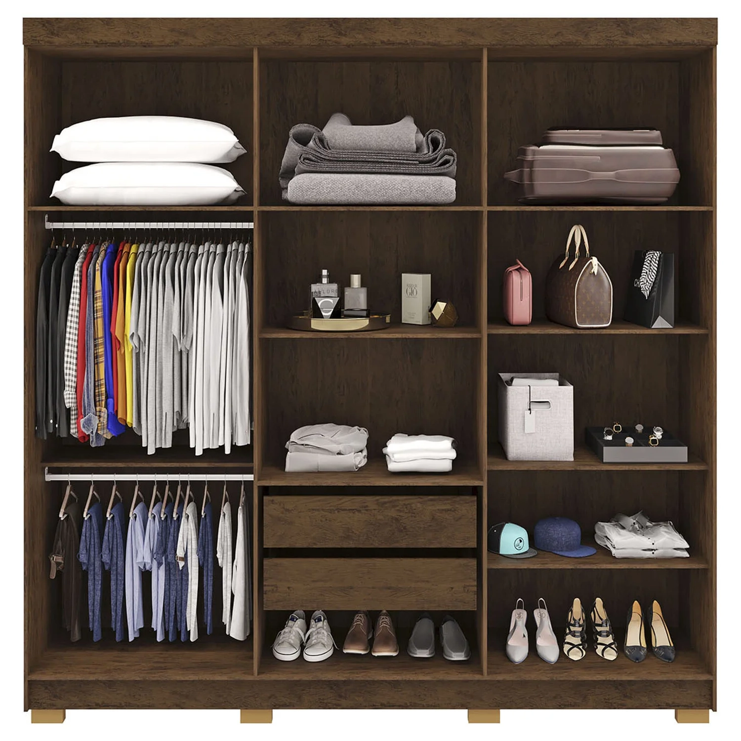 As gavetas com corrediças metálicas asseguram um excelente acabamento e durabilidade, proporcionando facilidade de uso e resistência ao longo do tempo. Esse detalhe técnico torna o Guarda Roupa ideal para quem precisa de um móvel que combine com o ritmo acelerado da rotina diária, sem abrir mão de qualidade e desempenho.