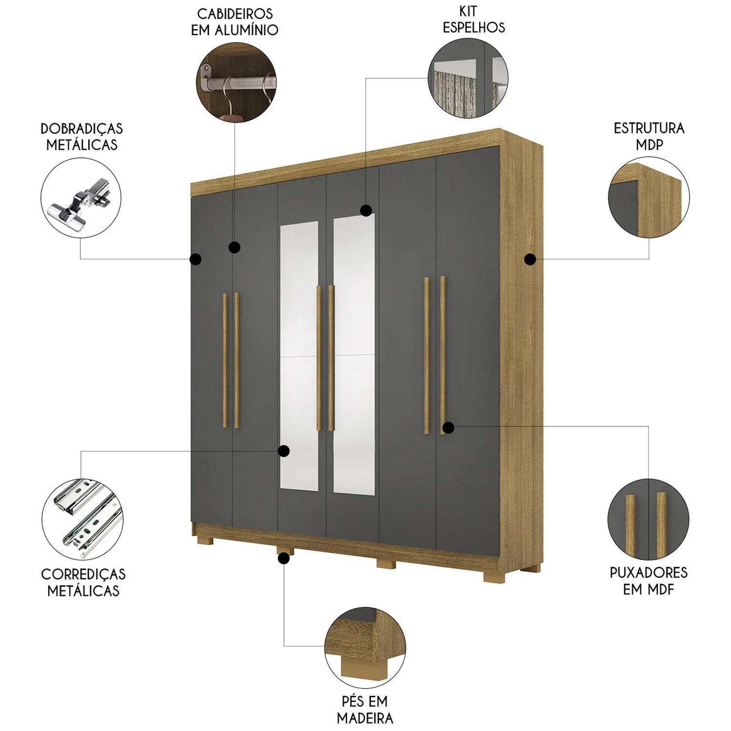 As gavetas com corrediças metálicas oferecem excelente durabilidade e acabamento, garantindo fácil uso e resistência ao longo do tempo. Este detalhe técnico faz do Guarda Roupa a escolha ideal para quem precisa de um móvel funcional, que acompanhe o ritmo acelerado do dia a dia sem abrir mão de qualidade e desempenho.