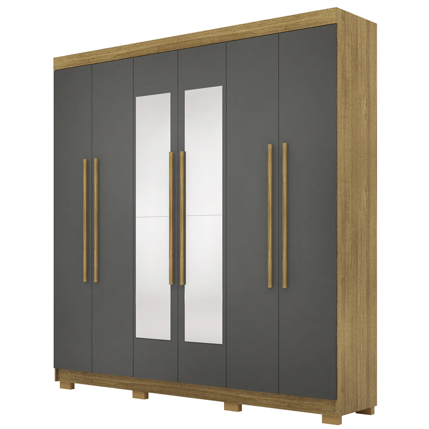 O design do Guarda Roupa Casal une sofisticação e funcionalidade, com puxadores em MDF revestido e pés retangulares que agregam um toque de elegância ao ambiente. Essa combinação de estilo e praticidade faz com que o móvel seja perfeito para o quarto, criando um espaço elegante e acolhedor sem sobrecarregar o ambiente.