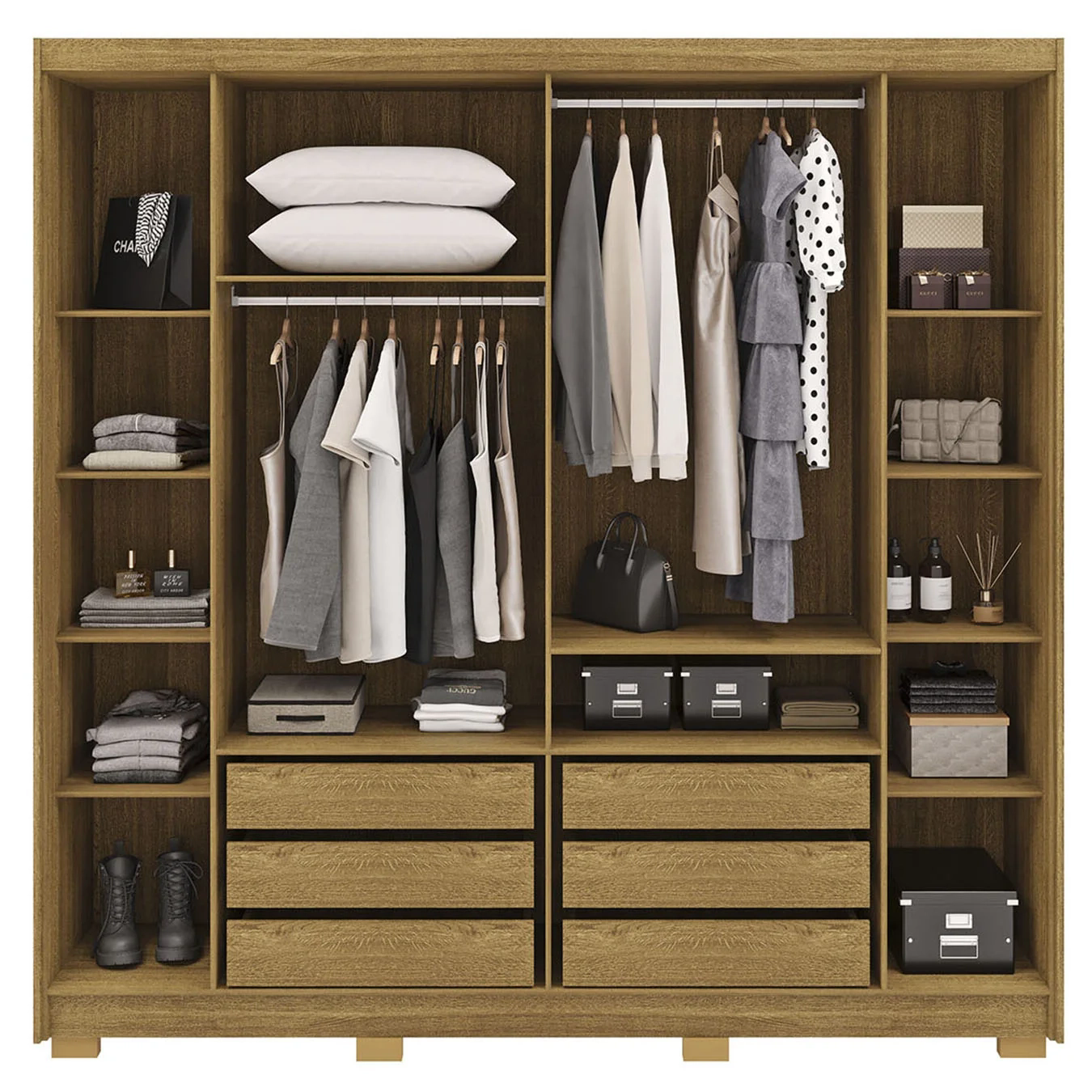 Guarda Roupa Casal 223cm 6 Portas Pako Nature/Champanhe V02 - Mpozenato